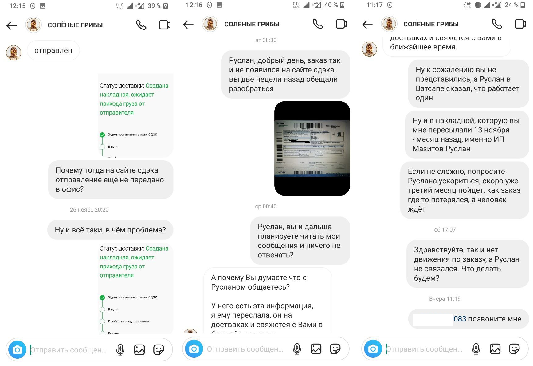 Если вкратце - искал, где купить солёные и маринованные грибы, для мамы, так как в этом году у неё не получилось собрать ничего самой, ковид, сами знаете как бывает. Нашел в Интернете сайт соленые-грибы.рф, выбрал товар, набрал 6 банок по литру, решил так сказать - выслать эксперту, коим считаю свою маму, на пробу - и не смог оформить заказ через сайт (ниже в скриншотах я пишу об этом). Ну, что поделать, перемещаюсь в инстаграм, пишу этому аккаунту (22 Октября), ну а дальше - сегодня уже 20 Декабря, заказ так и не доставлен, на связь не выходят, игнорируют в комментариях и личных сообщениях, телефон, указанный на сайте, не принимает входящие вызовы, в WhatsApp меня похоже заблокировали, так как последнее обновление статуса пользователя было 8 Декабря, через день после моего вопроса, ну и так далее...