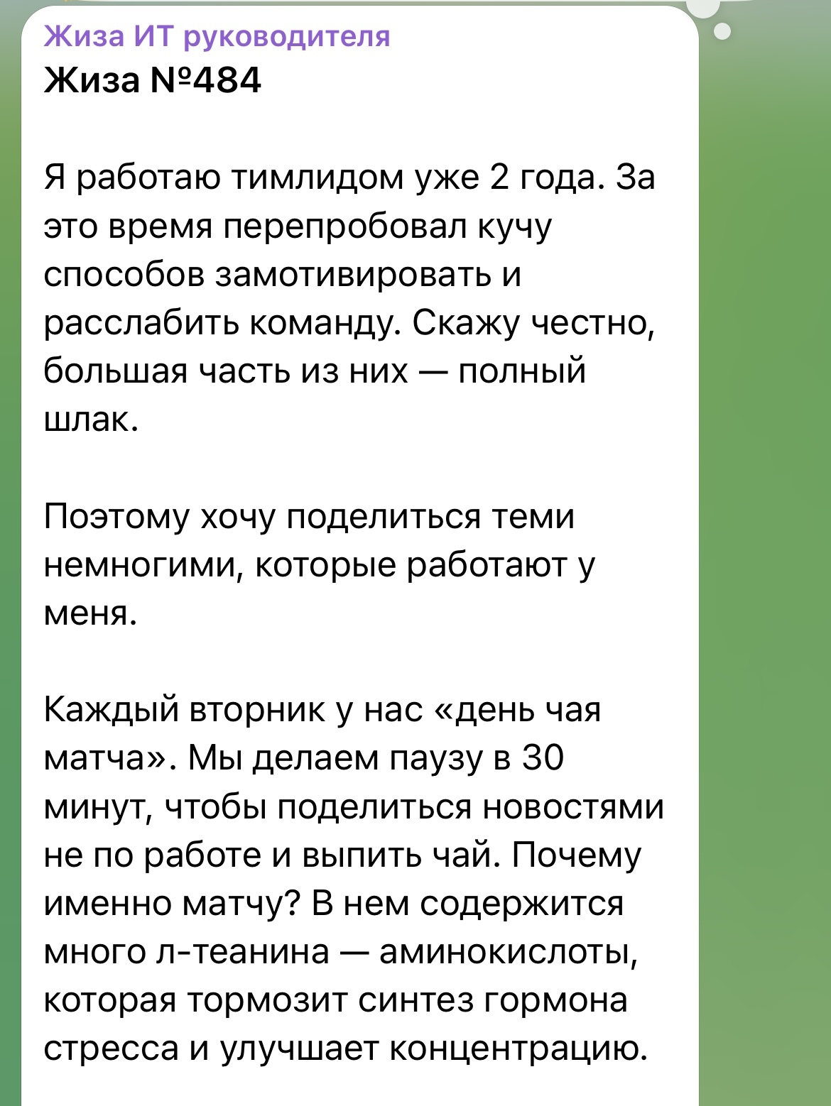 6 zhizait IT Как замотивировать и расслабить команду 10 месяцев назад Источник: «Жиза ИТ руководителя» IT Работа Менеджер Тимлид Мотивация Управление Истории из жизни Telegram (ссылка) Длиннопост Ещё 0