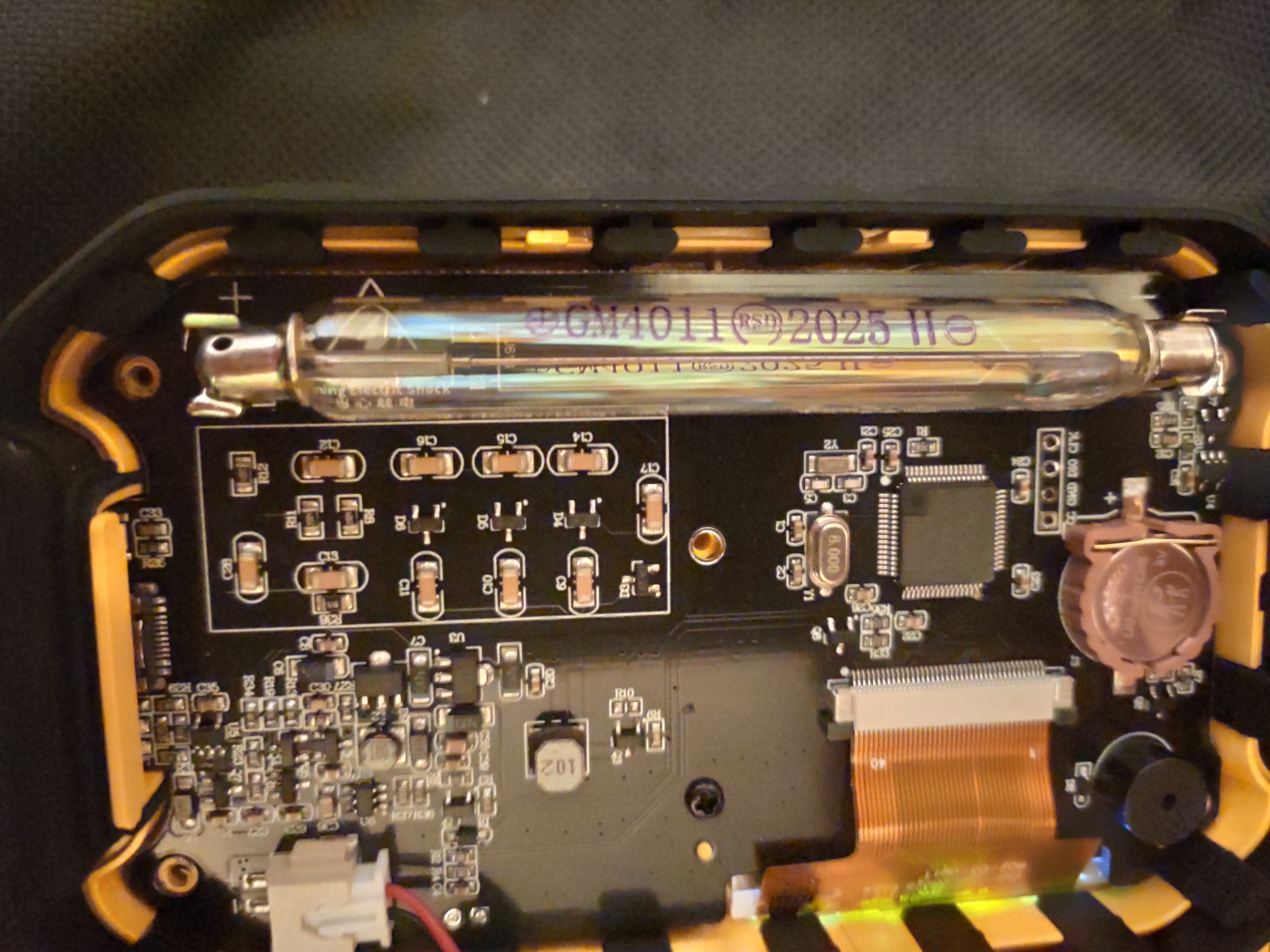 Но открыл корпус и удостоверился, что прибор не поддельный, есть и датчик Гейгера, и умножитель напряжения.