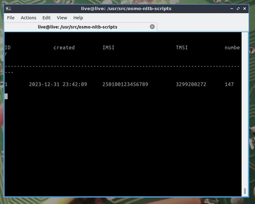 В этом окне отображаются IMSI абонентов, подключившихся к сети, а также их номера.