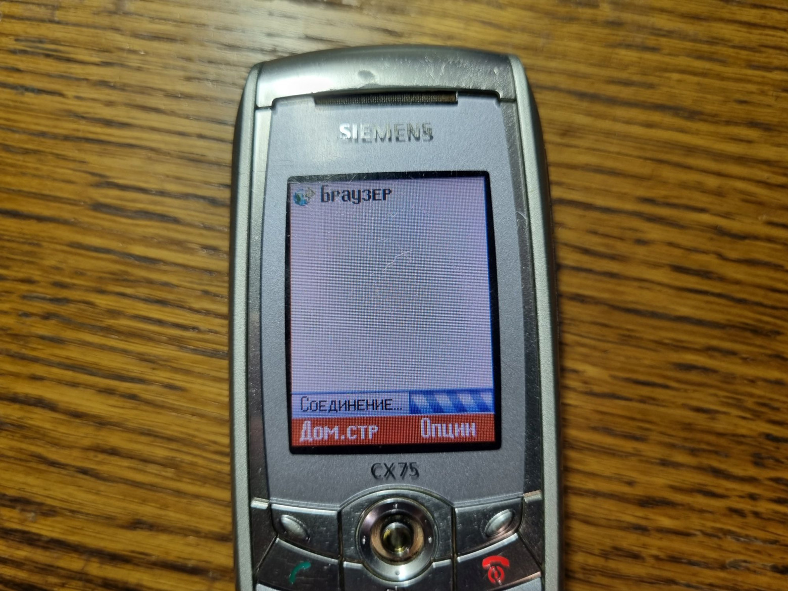 Увы, Siemens так и не смог загрузить ни один сайт. То ли что-то с настройкой точек доступа, то ли его браузер поддерживает только WML, но ничего больше унылой надписи «Соединение...» из него выжать не удалось.