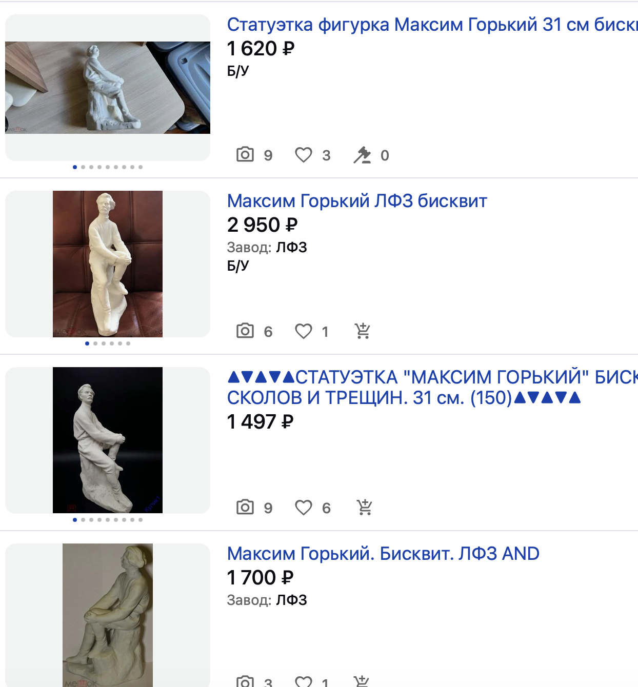 Итак, Слава решил пойти по беспроигрышным вариантам, которые пользуются спросом на аукционах - статуэткам ЛФЗ