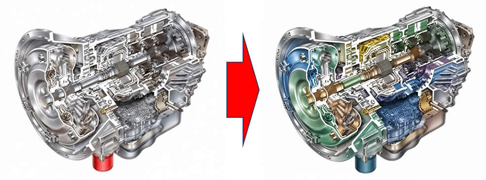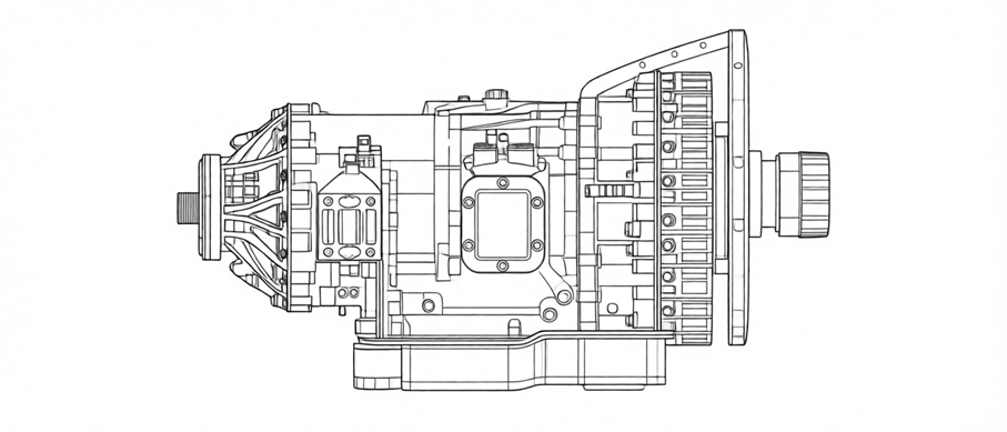 Есть изображение коробки переключения скоростей. Американская. Изображение – в изометрии. Даже с двух сторон! Но нужно изображение сбоку.