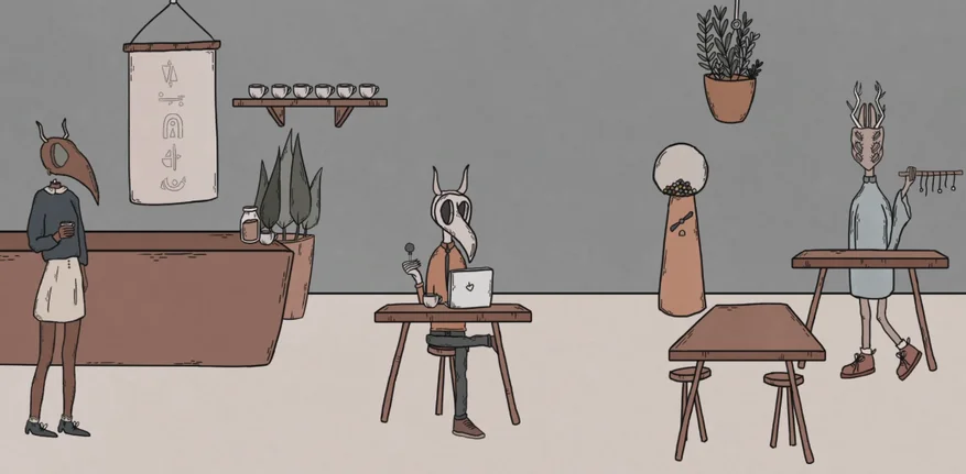Но, не получился. Потому, что наравне с жуками повсюду растут цветы, висят картины, светят лампочки и живут люди. В каждой локации персонажи занимаются чем-то вместе, будь то дом незнакомца, где трое друзей играют в настольные игры или кафешка, в которой пара влюблённых созданий завтракают. Наблюдая за этим, мы можем понять главную мысль игры — человеку нужен человек.