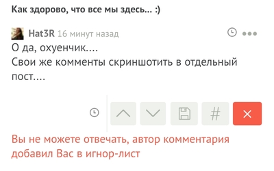 Ох, ё, чо началось-то) Я вообще свой коммент запостил, т.к. это начало ветки, чтоб было понятно о чём речь) а чувак наверху чот прокомментил меня и сразу в чс кинул, даже ответить ему не могу =) Ну да ладно. Давайте так, я в том посте около 10 плюсов собрал, накиньте мне тут 20 минусов, чтоб неповадно было и будем считать, что я честно отмотал косяк =D Пикабу согласен?)