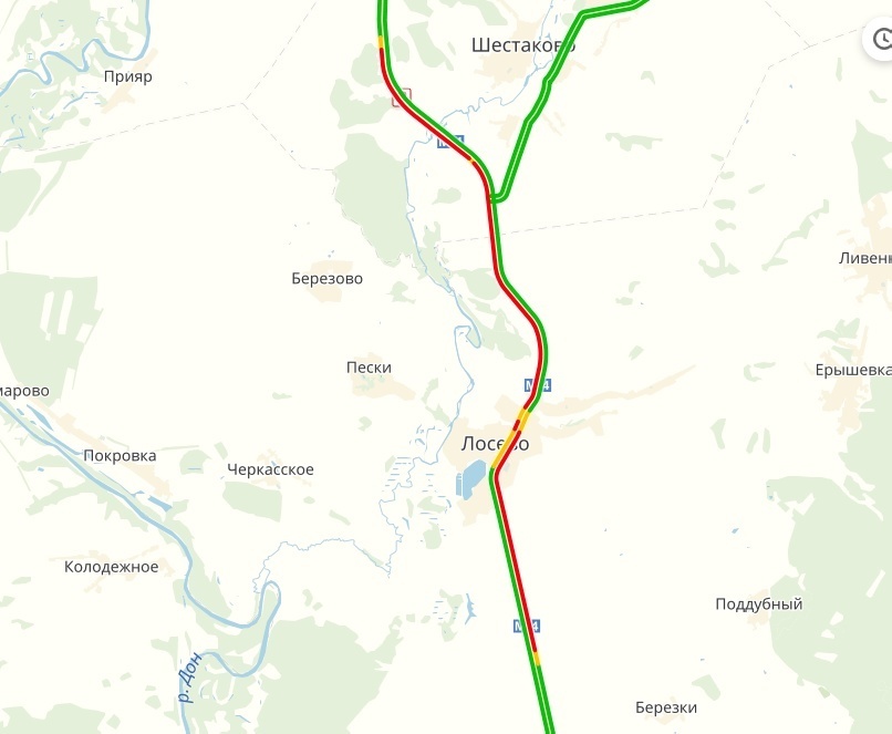 Ехал в воскресенье ночью пусто, вчера ночью тоже пусто, но это все в сторону Воронежа, а вот в сторону Юга пробка. Но сейчас она связана с погодой, так как льет дождь и ничего не видно. Объехал вчера по своему предложенному пути, у меня вышло на час больше до Богучара, чем по м-4
