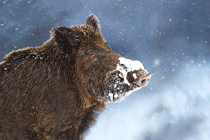 Бедному кабану не только холодно, но ещё и голодно зимой. А ещё очень и очень неудобно: постоянный бег по пересечённой местности, сплошь усыпанной сугробами, никому не доставит удовольствия. Мало того, что еды не хватает, так охотники постоянно нервируют. Зимний период для кабана — настоящий тест на прочность, даже учитывая невероятные особенности его кабаньей физиологии.