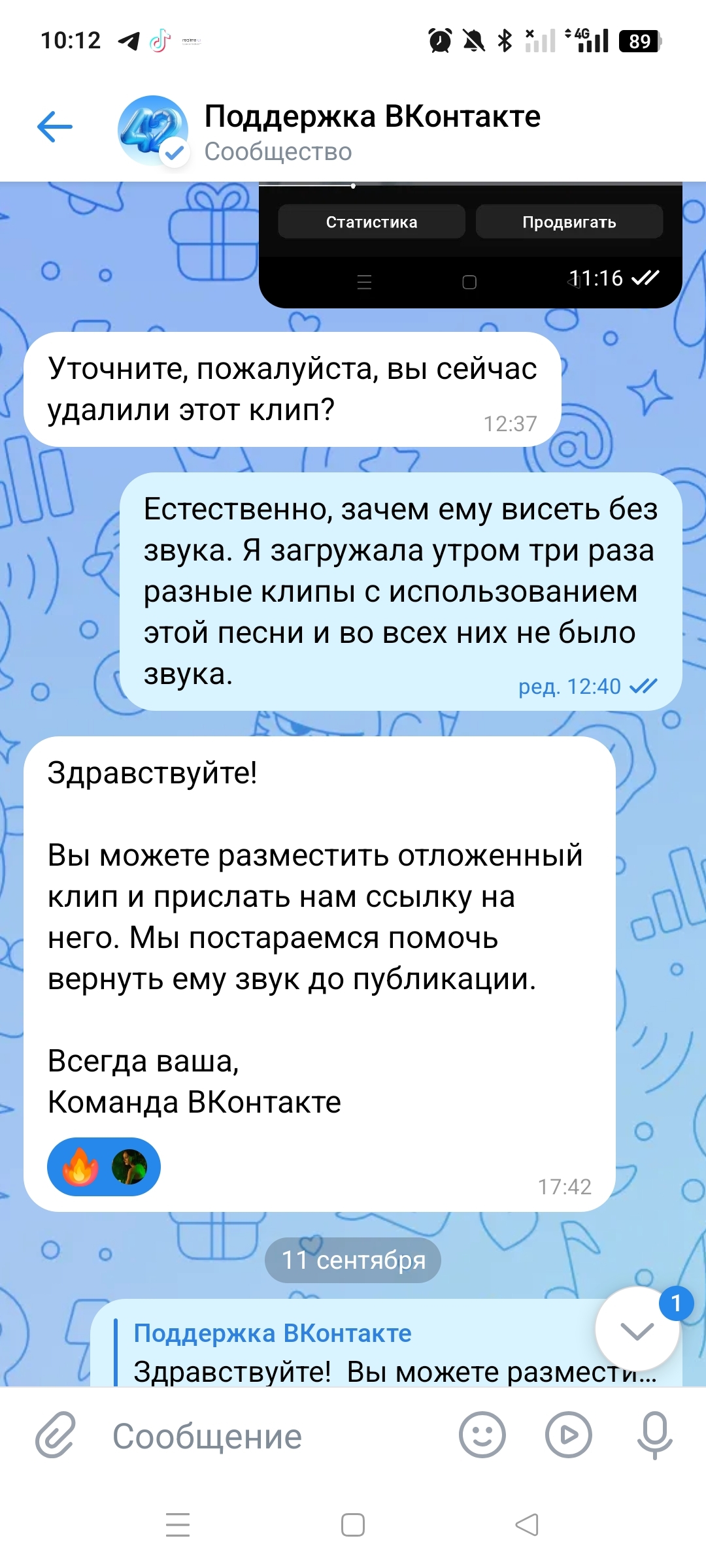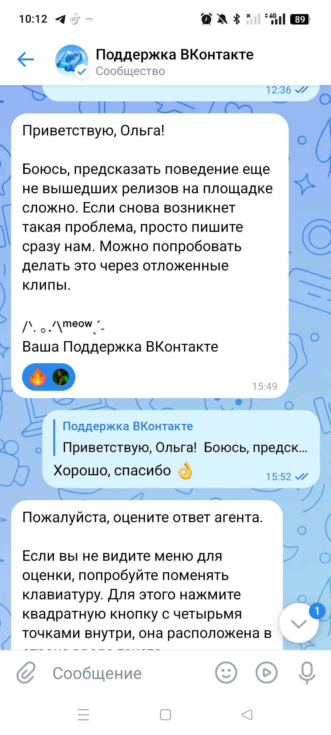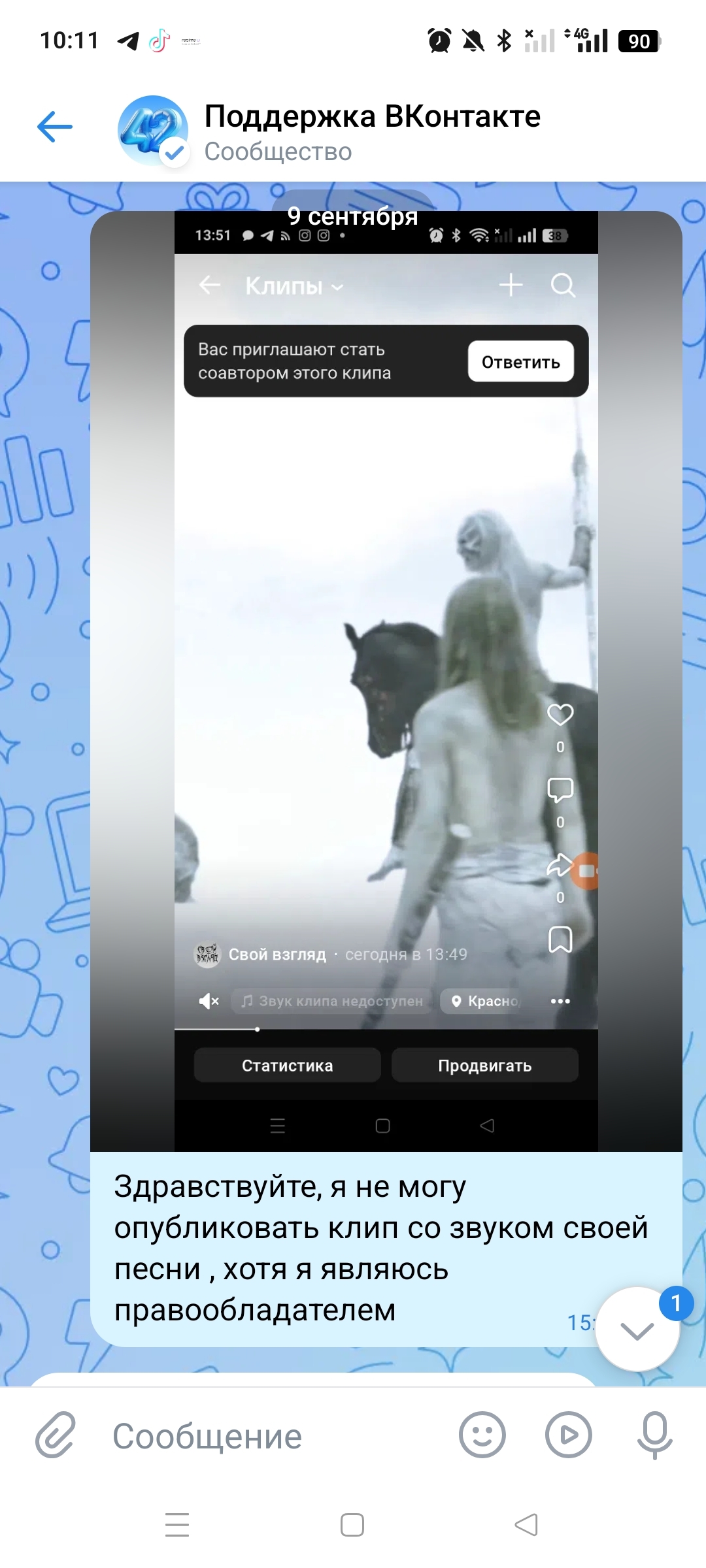 Мне агент поддержки ВК начинает рассказывать, что в ручную пытается разрешить использовать мою же лицензионную музыку в клипах и пока он без звука должен повисеть в ленте клипов без публикации на стене. Слава богу разобрались что предложки тоже достаточно для технической работы. 😶🌫️