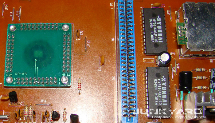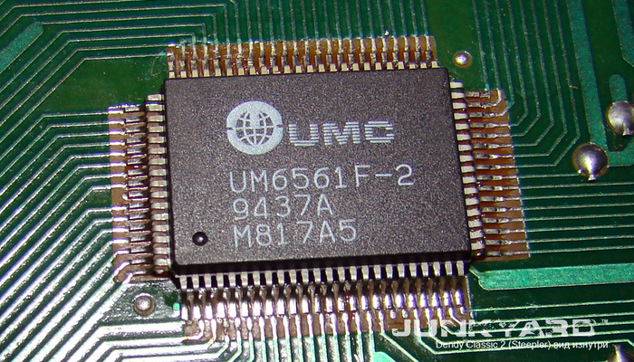 Что касается внутренностей приставки, то вся аппаратная часть, за исключением двух микросхем памяти, умещается на одном кристалле, расположенном по центру платы. Это значительно удешевило производство приставки, но такое решение менее надежно. Совместимость с картриджами не пострадала – запустились все игры, без проблем.
