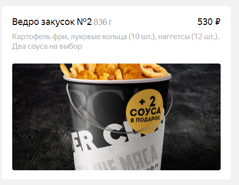 Решила попить пива и заказать закусок к нему. Зашла в Яндекс.Еду, увидела неплохое (836 грамм, как раз хватило бы мне и моему бойфренду) ведро закусок, заказала, оплатила картой. Привезли минут за 40.