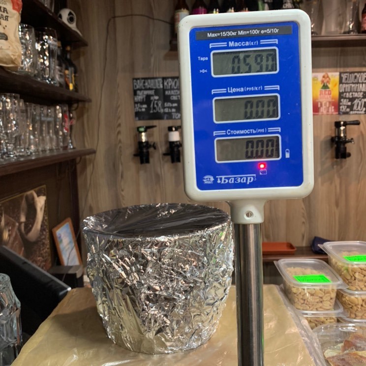 Я взяла ведерко в руки и сразу поняла, что 800 граммами там и не пахнет. На всякий случай взвесила, и да, там 590 грамм вместо 836, то есть, меня обвесили почти на треть: (а ещё минусуйте фольгу)