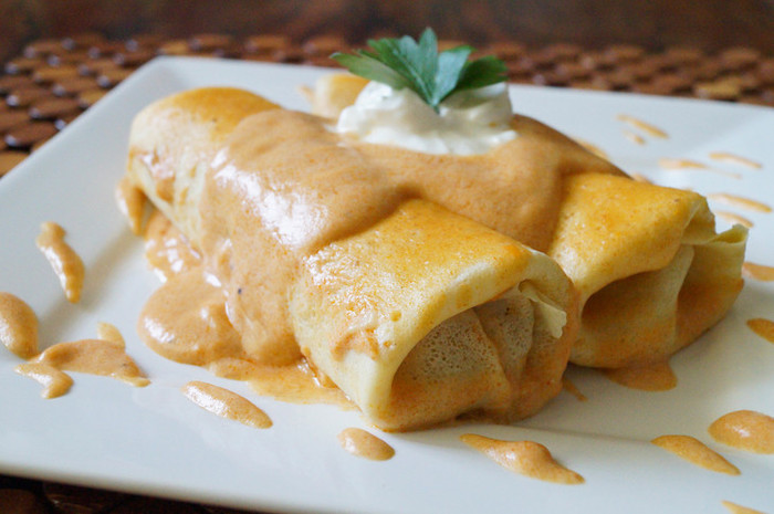 Особенность таких блинчиков в их начинке из телятины, пасты из паприки, томатного соуса, болгарского перца и сметаны. Стоит отметить, что паприка и сметана – это любимое сочетание в венгерской кухне.