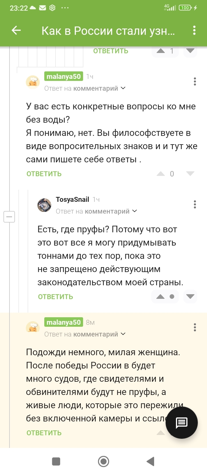 malanya50 Каких взглядов эта тётя? 20 дней назад До этого скрина был поток портянок, типа дай доказательства про 2014 год с подробностями . Интересно, сколько их тут таких, которые чтут закон в свою сторону. [моё] Законодательство Болтология Длиннопост 2 1 Ещё 0