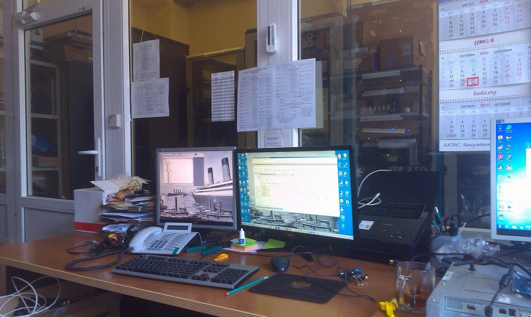 Кабинет и рабочие места сисадминов в одном из учреждений гос.аппарата в СПб, в 2014-2016 годах. Сейчас это учреждение давно съехало с этого здания, что там сейчас, я не знаю, так как давно там уже не работаю..