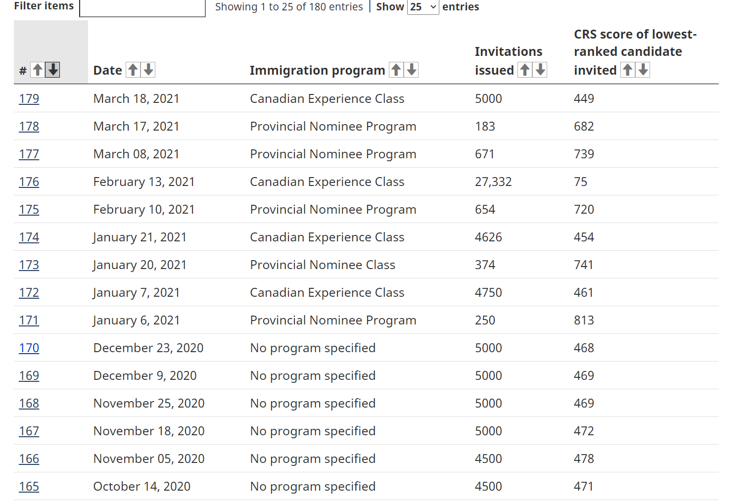 Существует пул кандидатов, к примеру 162000 человек и у всех есть разные баллы. Канадское правительство до ковида брало 2500 человек каждые 2 недели сверху пула. То есть из этой массы люди с наиболее высокими баллами отбирались каждые 14 дней. Иногда количество людей было больше иногда меньше. Если вы отобраны то вам дают ITA в личном кабинете