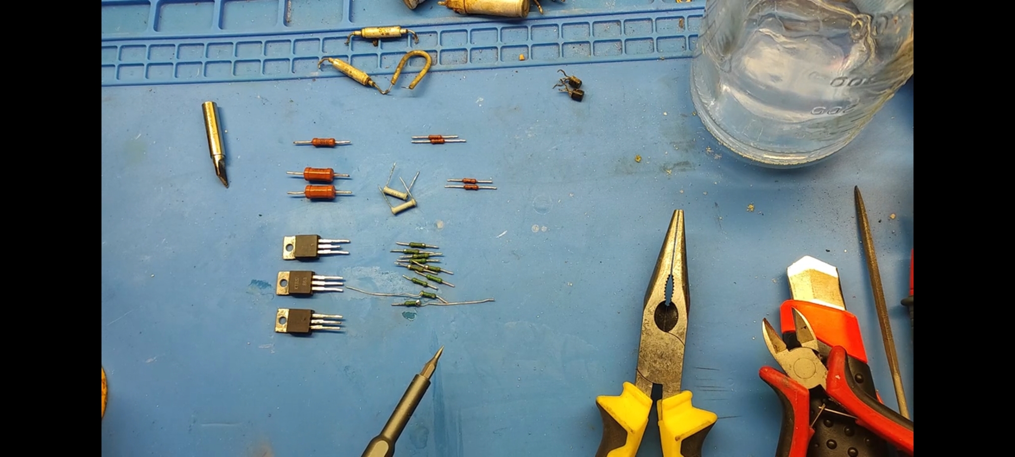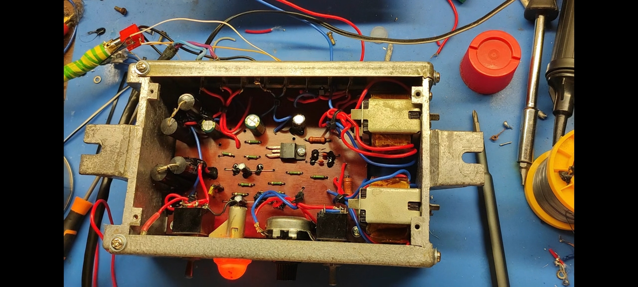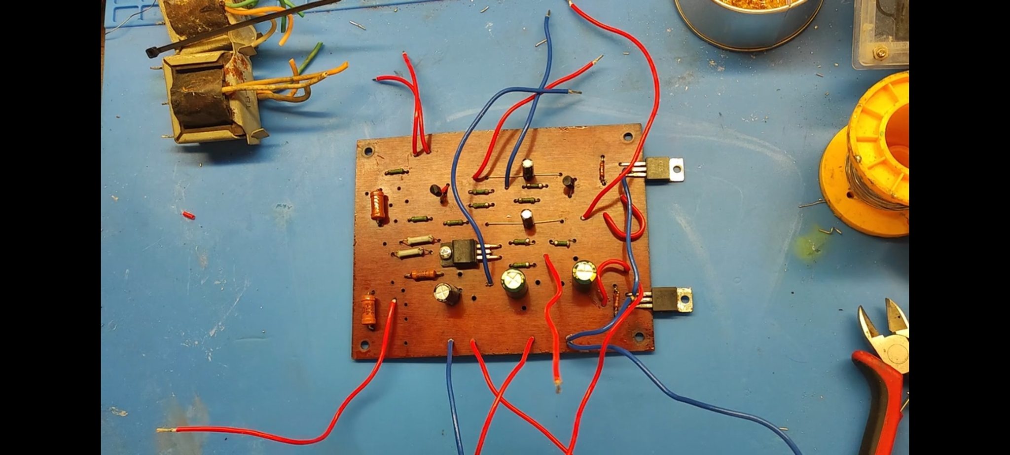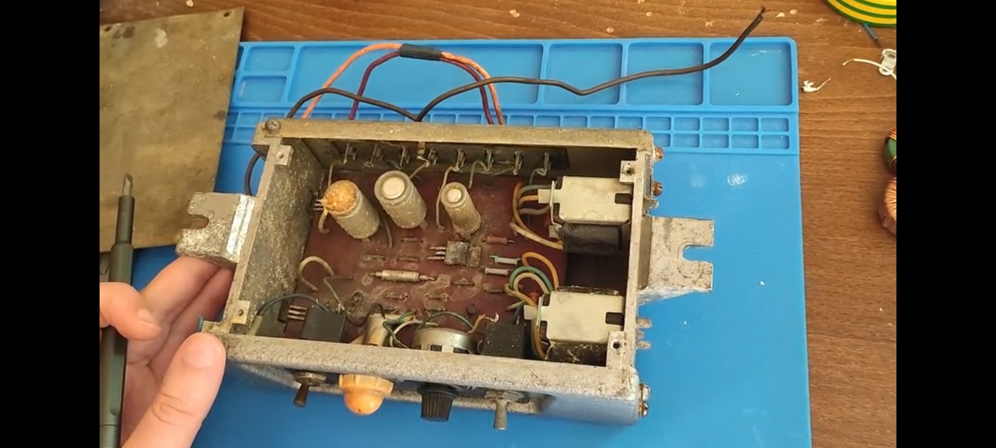 Транзистор Т2, увы, превратился в кусок пластика, а у Т3-Т5 поплыли характеристики. Меняем их и собираем всё по схеме назад (электролиты, естественно, тоже все под замену):