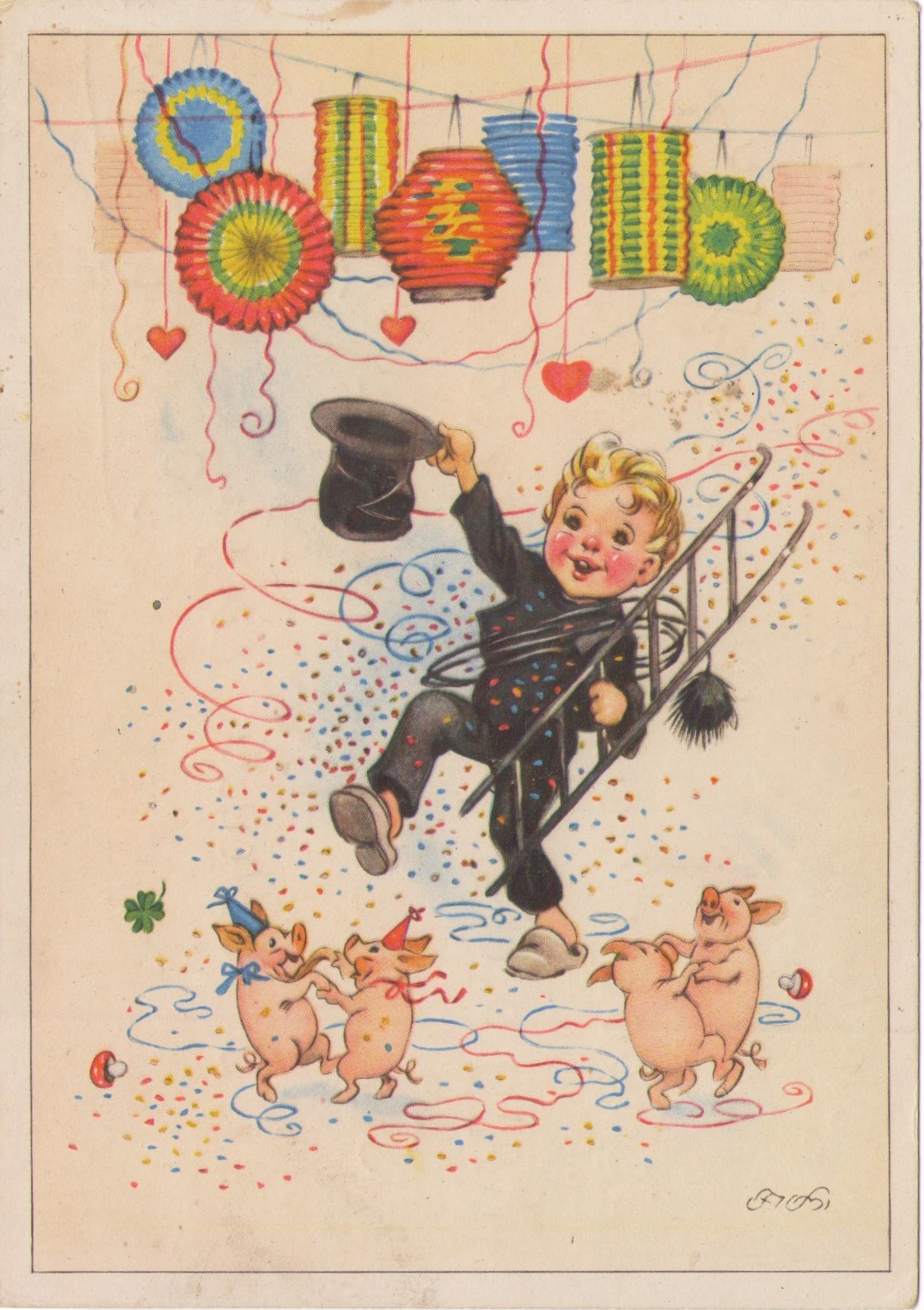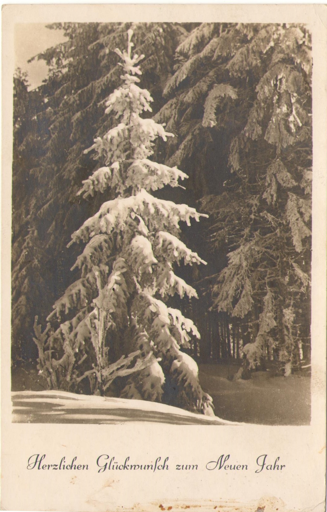 Открытка 1945 года, причем поздравление приклеено уже поверх какого-то имевшего место быть.