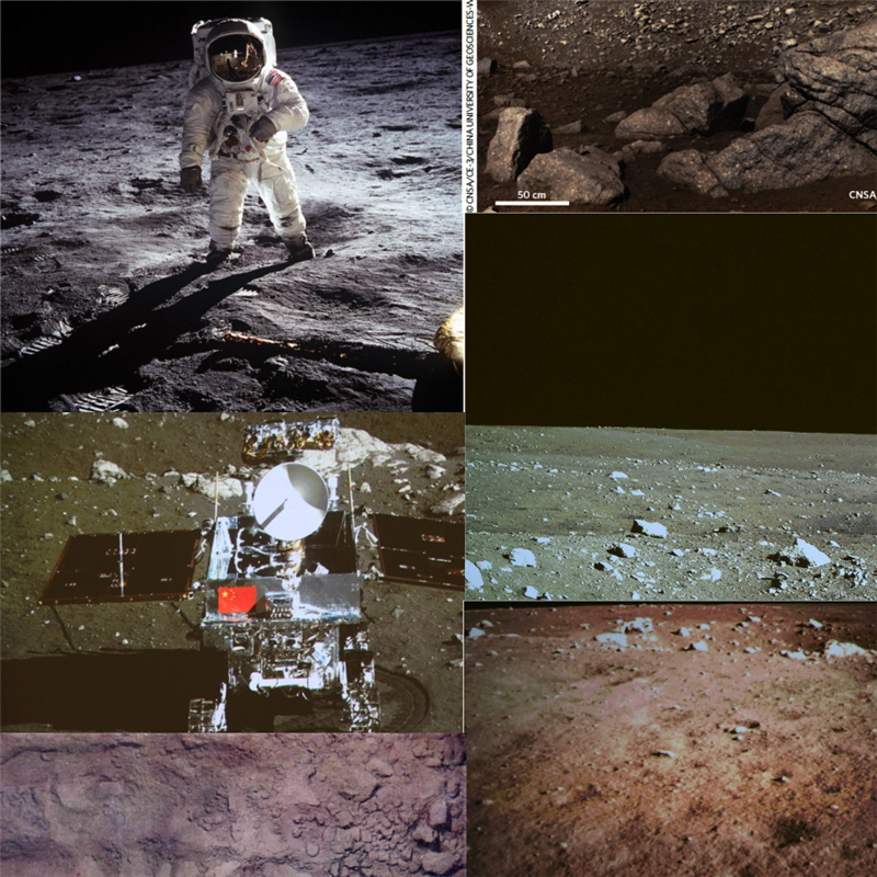 Преобладающие цвета которого: желтый, оранжевый, бежевый, золотистый, фиолетовый, зеленый и уж только потом серый. ( фото с космонавтом, это не Луна )