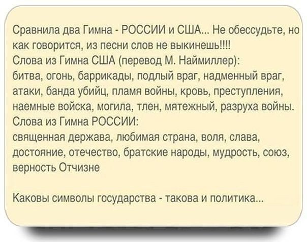 2 DELETED Каков гимн, такова и держава... 9 лет назад Гимн Россия США Политика Картинка с текстом ВКонтакте