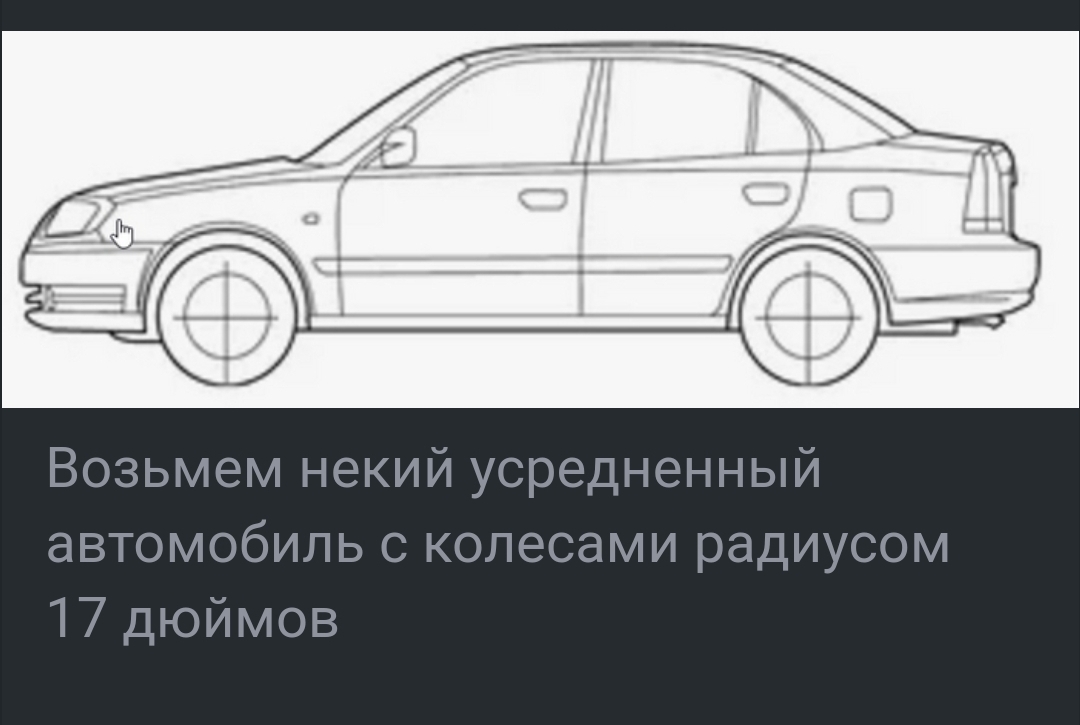 Простите, в расчеты закралась ошибка. 17 дюймов это не радиус колеса, а диаметр!