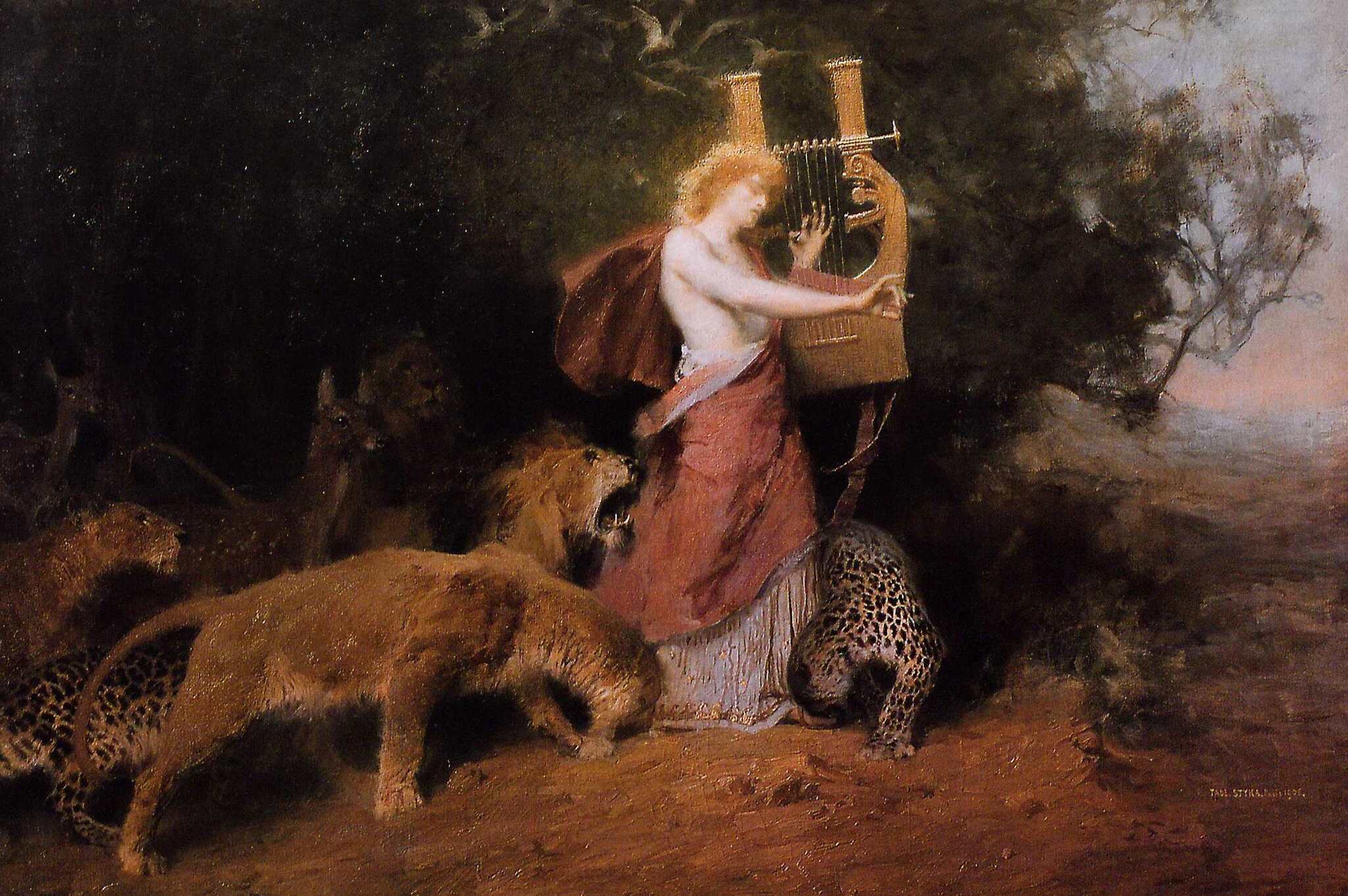 Жил на свете великий музыкант по имени Орфей. Сам бог Аполлон научил его играть на лире! Даже деревья и камни заслушивались его музыкой. Орфей полюбил девушку по имени Эвридика. Они поженились, но их счастье длилось недолго: Эвридика умерла от укуса ядовитой змеи. Орфей отправляется вслед за ней в царство мёртвых.