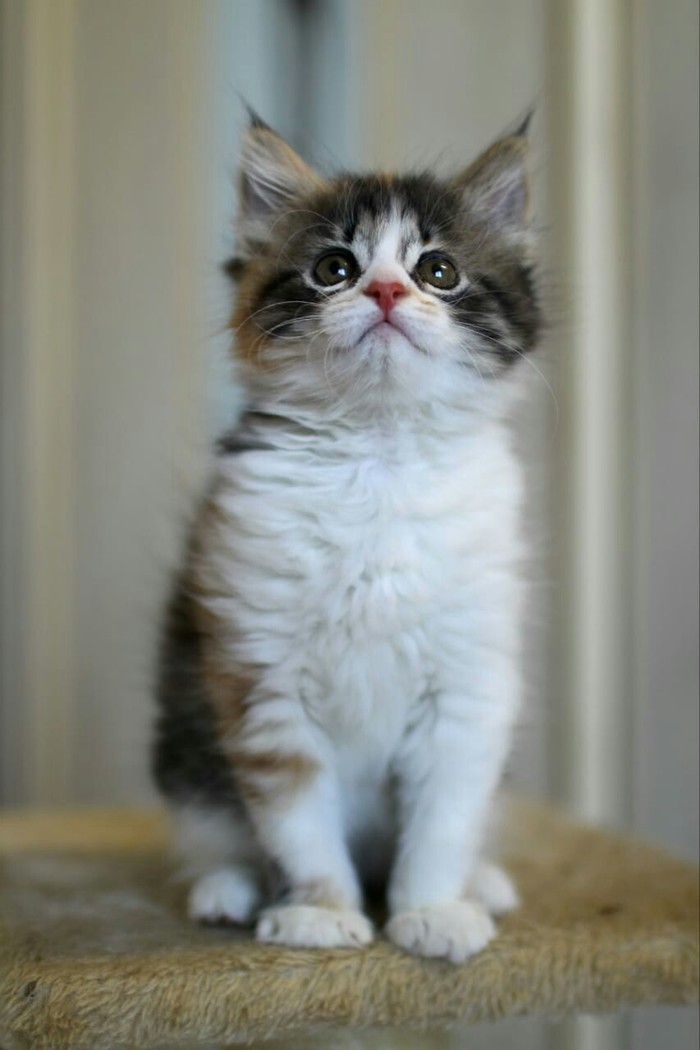 Я влюбилась в эту крошку с первого взгляда, тут же позвонила автору поста и оказалось, что я была первая. Я решила, что это судьба. Оказывается, она нашла её в коробке на остановке, услышала, что там кто-то тихонько плачет, посмотрела кто в коробке, увидела чистенькое и прекрасное создание и конечно взяла домой, чтобы в дальнейшем пристроить её, так как у самой уже 4 найденных кота.