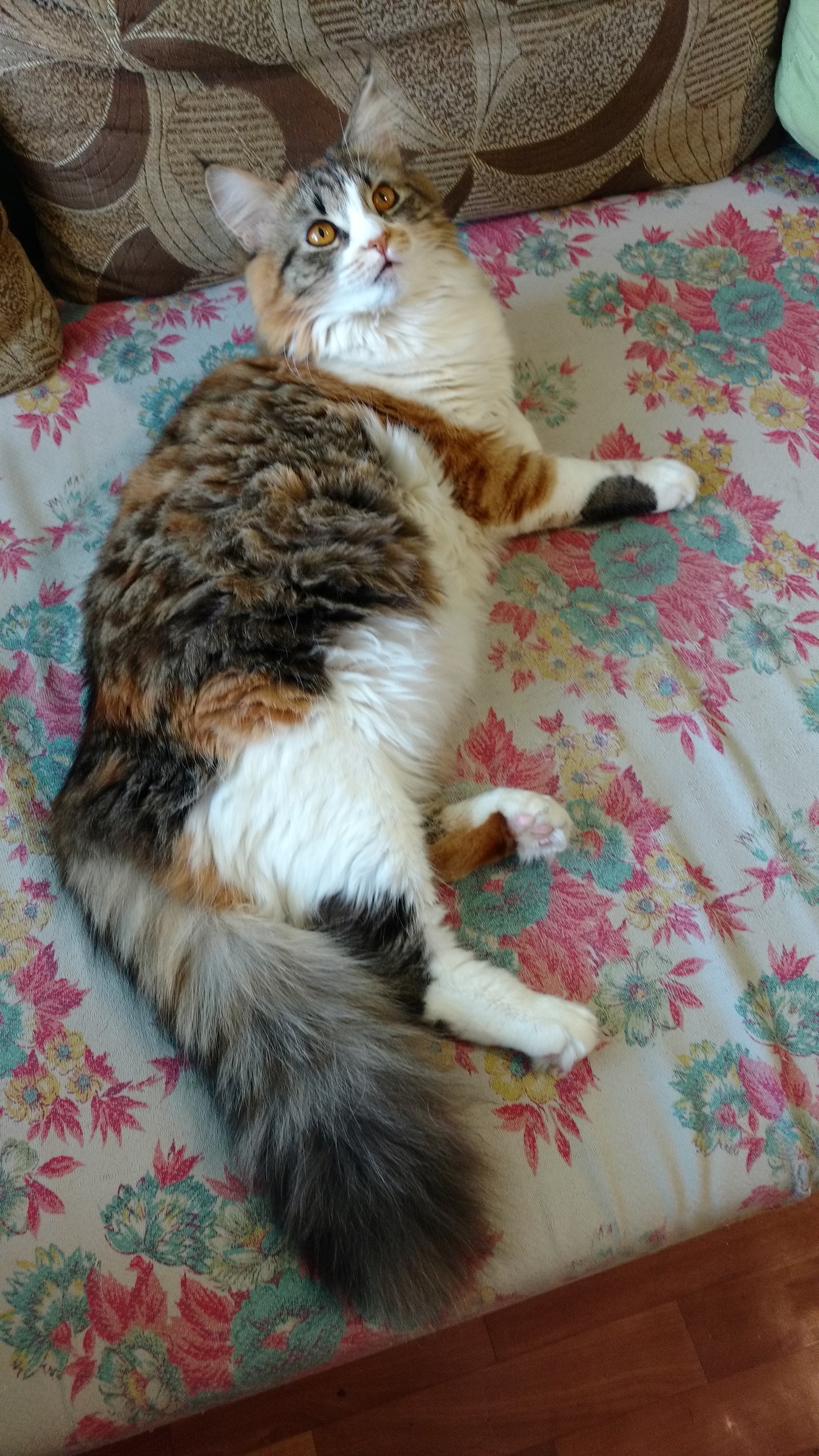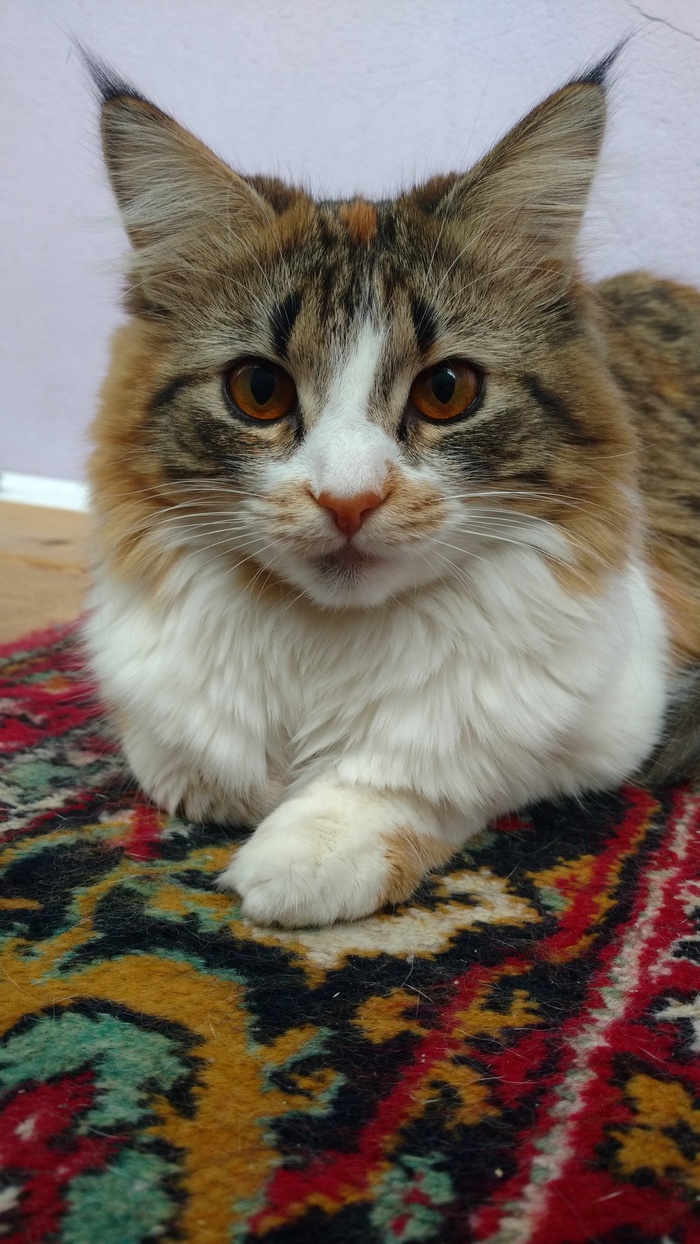 А вот такая она сейчас, наша красавица, умница и большая озорница Трис Мэри Гольд, так сын назвал, потому что в детстве она была злой ведьмочкой))) всех кусала. Никого не боялась, гоняла кошек и собаку. Спала и спит в основном на нас, на лице, шее, груди. Очень ласковая, но если достанем, то и зубки в ход идут. Очень любопытная и игривая. И очень тихо и тоненько мяукает, как в детстве. И большая фырчалка, самый большой рекорд был-почти час. Лечила меня. Вот такое необыкновенное создание у нас))
