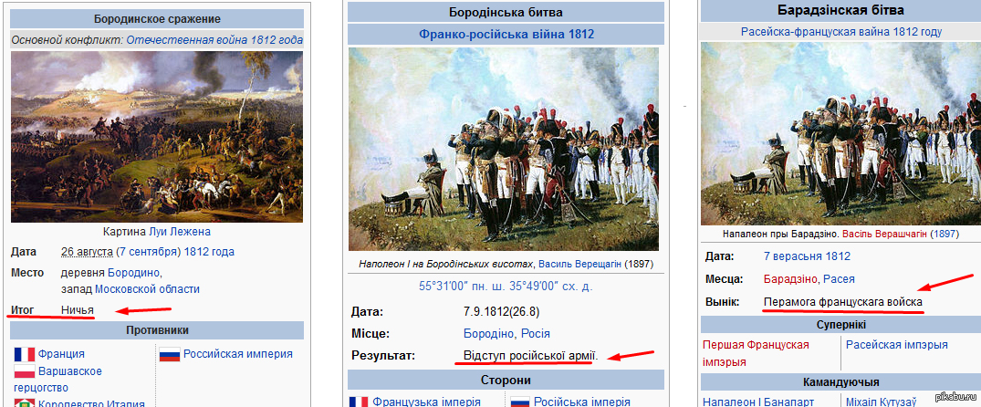 3 bizon Какой же итог Бородинского сражения 10 лет назад русская, украинская и белорусская вики [моё] Бородино Наполеон Отечественная война 1812 года Михаил Кутузов Википедия