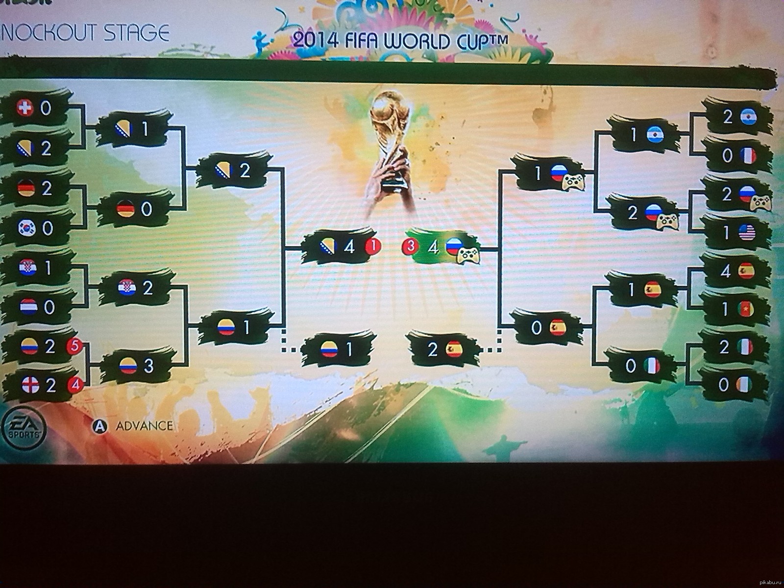 Grammatik51 11 лет назад Как-то сам такого не ожидал. Играл в Fifa World Cup, решил попытать счастье и сыграл за Россию, вот результат.Ни разу не перезагружал и играл на средней сложности. Думаю, на ЧМ будет так же [моё] Чм 2014 Россия FIFA