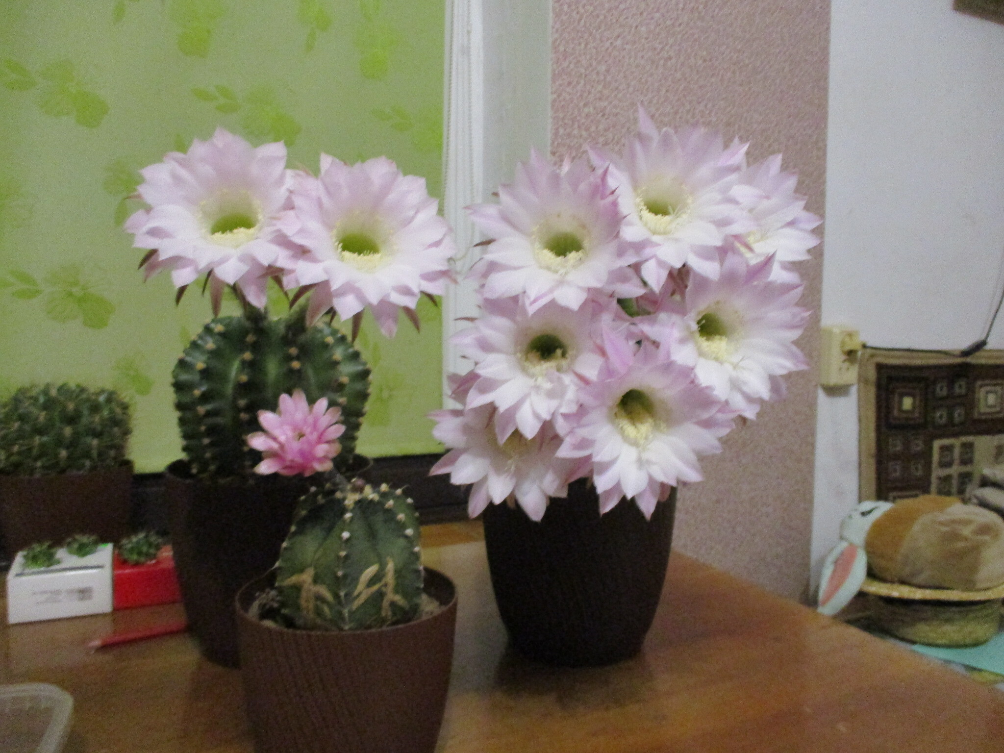 542 WitKu Кактусы1 1 год назад Купил в магазине почву, и вот результат. Маленкий гимнокалициум уже 4-й цветок выпустил и ещё бутон, а большой уже выпускал три цветка, теперь 7+2 и ещё пяток будет [моё] Комнатные растения Цветущие кактусы Кактус эхинопсис Фотография 15 8 Ещё 0