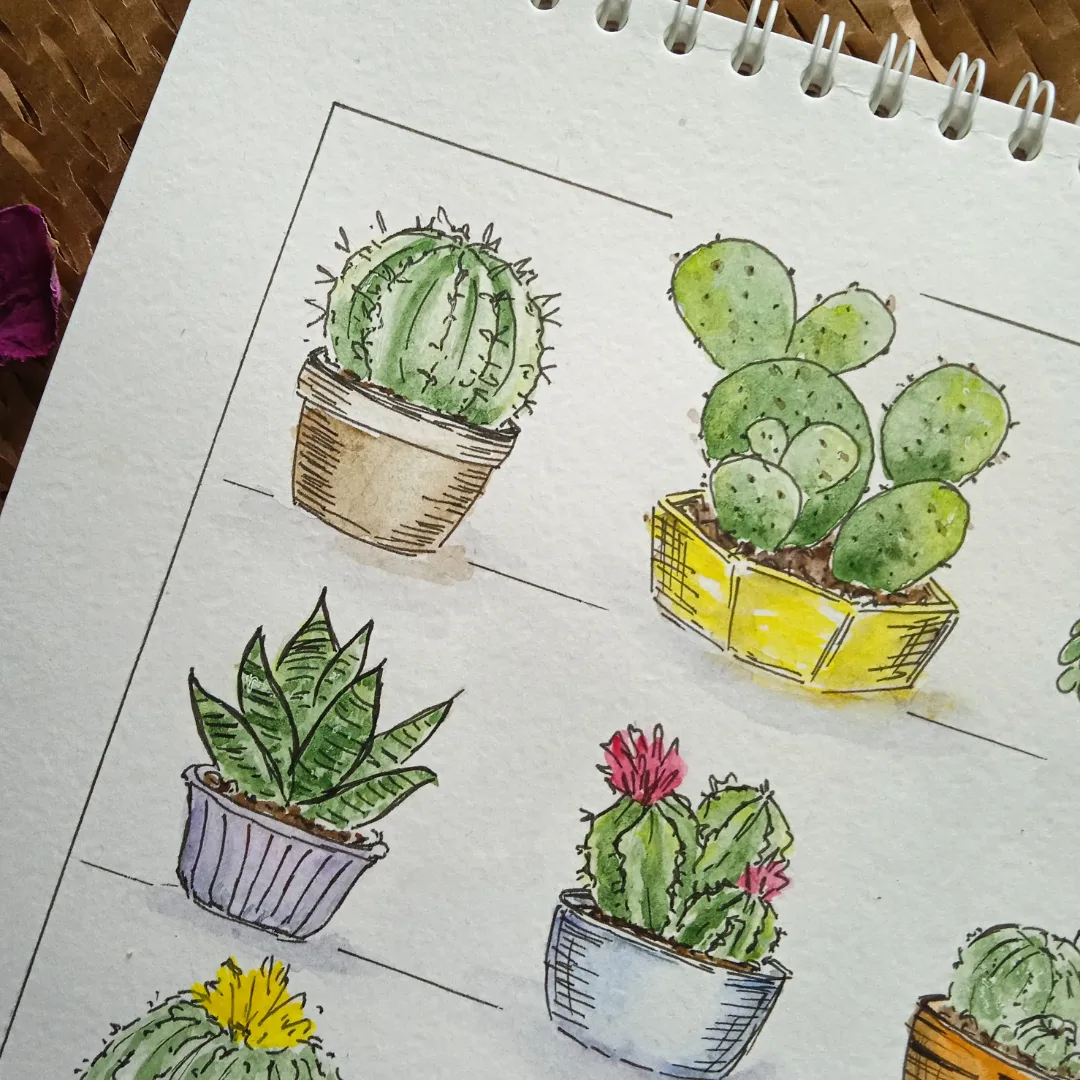 Кактусы акварелью