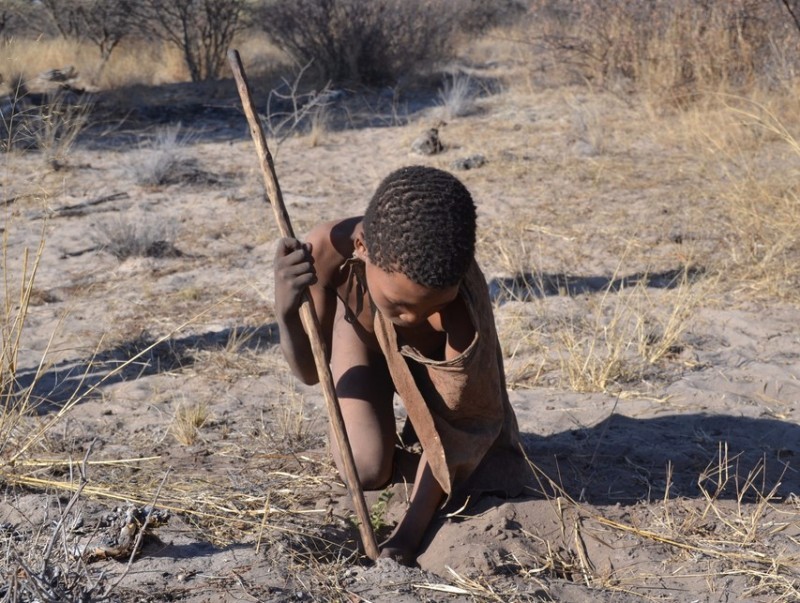 Не смотря на то, что бушмены лучшие в мире следопыты, мясо им удается есть не часто. Одна из причин того, что бушмены маленькие и стройные – как раз недостаток белковой пищи в рационе и основным видом добычи пропитания для них, как и тысячелетия назад является собирательство.