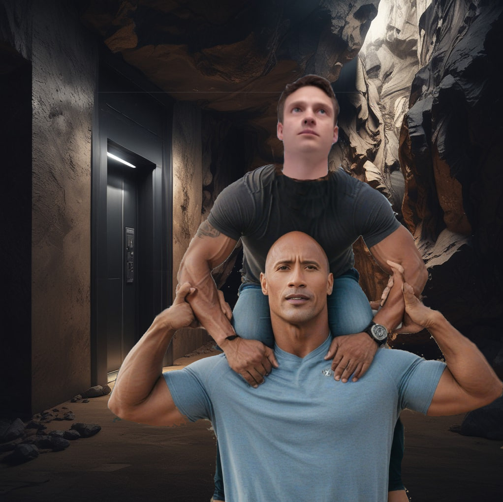 Внезапно из тени выходит Дуэйн Джонсон и стоит неподвижно, как скала.