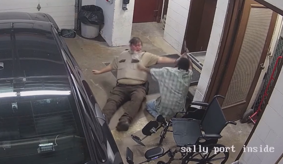 Предыстория. Фредерику Госсу 55 лет, он сидит в инвалидном кресле. В тот день о нём заботился сотрудник американской ФСИН Джефф Кларк. Он снял с заключённого наручники перед тем, как завести его в судебный зал, потому что присяжные не должны видеть наручников, дабы не думать о подсудимом плохо. У Фредерика Госса болела ножка, но он не утратил диких инстинктов, решил завладеть пистолетом и сбежать. Правда как бежать, когда он ходить не может? Об этом он не подумал.