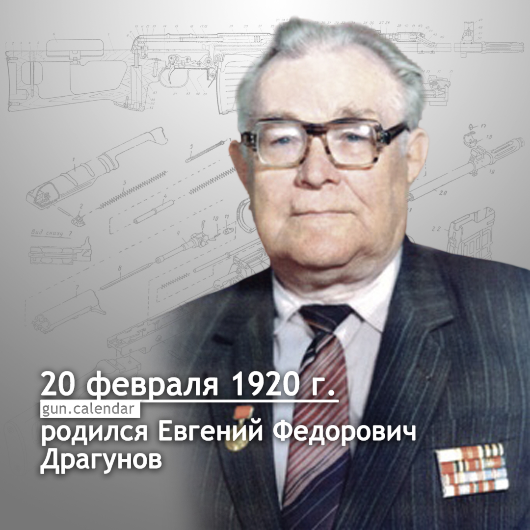 20 февраля 1920 года в городе Ижевске родился Евгений Фёдорович Драгунов. Отец и дед Евгения Фёдоровича были оружейниками, именно поэтому в 1934 году он начал обучение в Индустриальном техникуме, готовивший специалистов для оружейного завода, куда и поступил на работу технологом в ложевой цех в 1938 году. Осенью 1939 года Драгунов был призван в ряды РККА и направлен служить на Дальний Восток. После демобилизовался Евгений Федорович в 1945 году с должности старшего оружейного мастера Дальневосточного артиллерийского училища, вернулся работать на Ижевский завод на должность техника-исследователя в отдел главного конструктора.