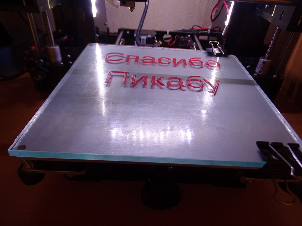 2) Стол немного кривой примерно на пару микрон с выпиранием в центре, но без стекла это не влияет на качество печати.