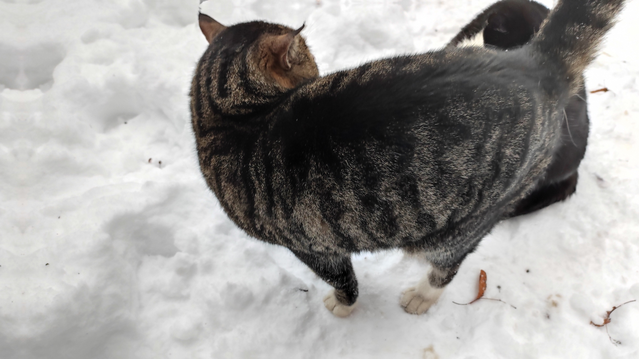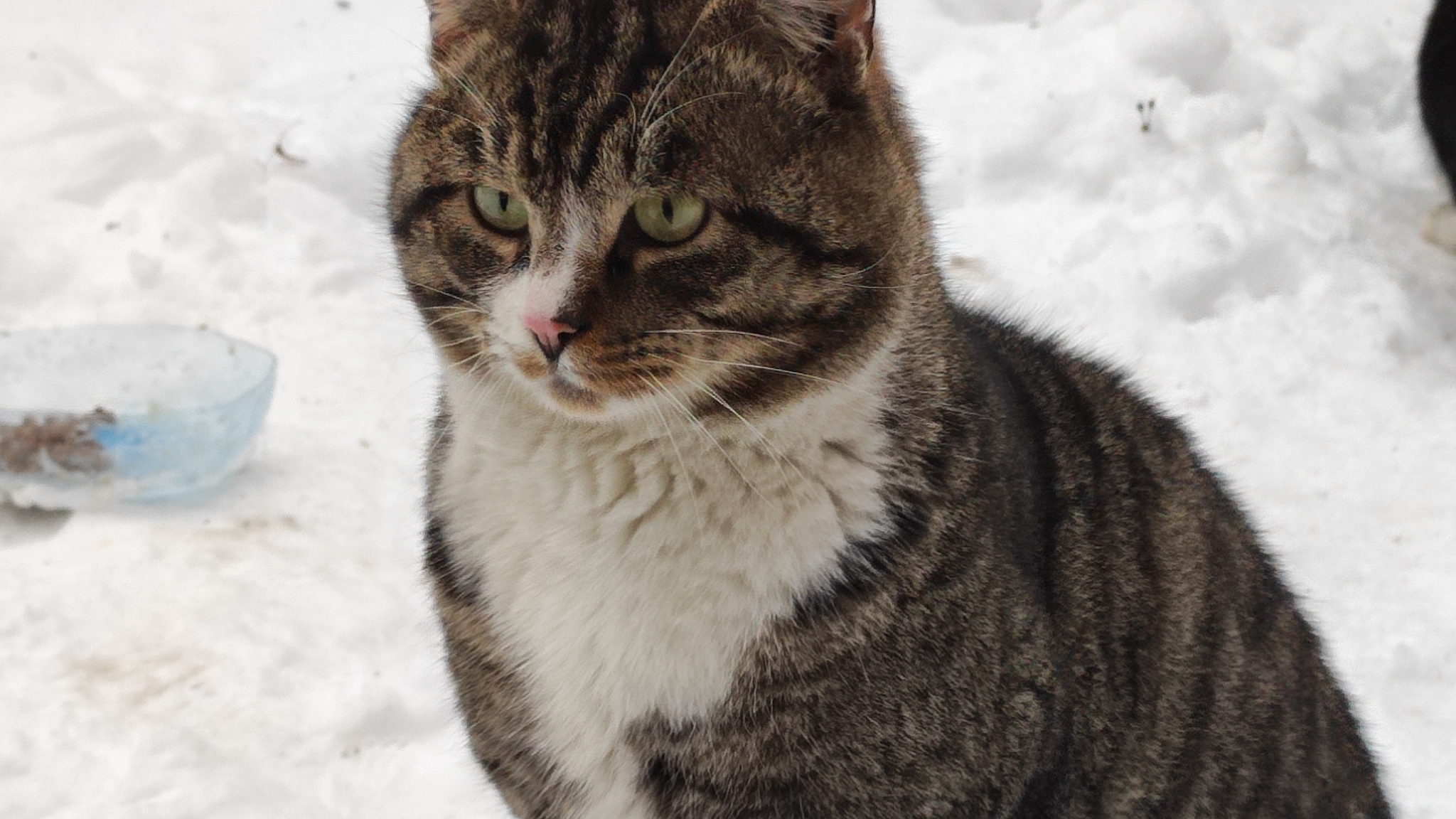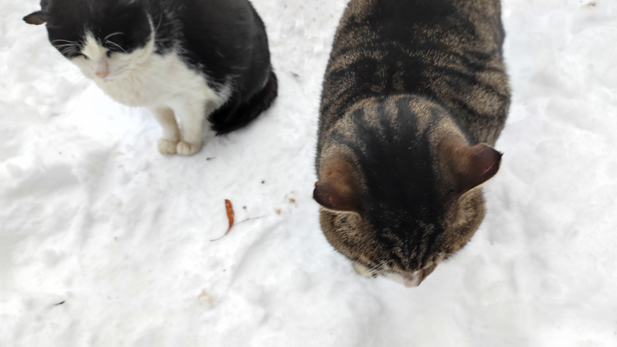 У нас за поликлиникой в центре города есть ласковые коты. Их шесть штук. Время от времени подкармливаем, нам их жалко.