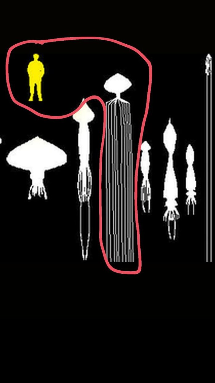 Для современных кальмаров характерно наличие внешне отличающихся 8ми рук и 2х щупалец, но у Магнапинны все 8 рук и 2ое щупалец имеют одинаковое строение. С каждой руки и щупальца свисают длинные нитевидные отростки Их длина достигает 8ми метров при длине тела кальмара в полтора метра и вся поверхность этих отростков усыпана крохотными липкими присосками, к которым прилипает пища. Свои отростки кальмары могут при необходимости скручивать в пружинки. 😬