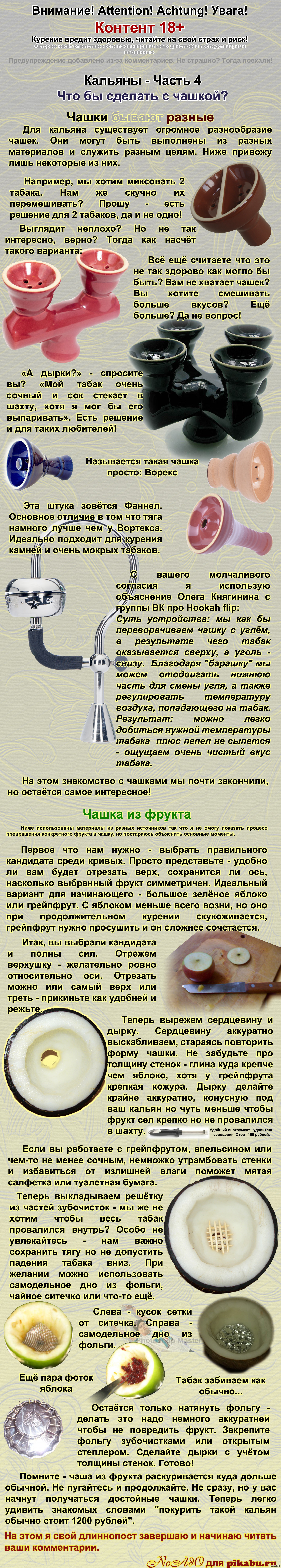 14 Noado о мото Кальяны. Часть 4 - Что бы сделать с чашкой? 12 лет назад Предыдущие части смотрите в профиле или в комментарии внутри Ставишь минус? Напиши - почему. Учту. [моё] Длиннопост Кальян