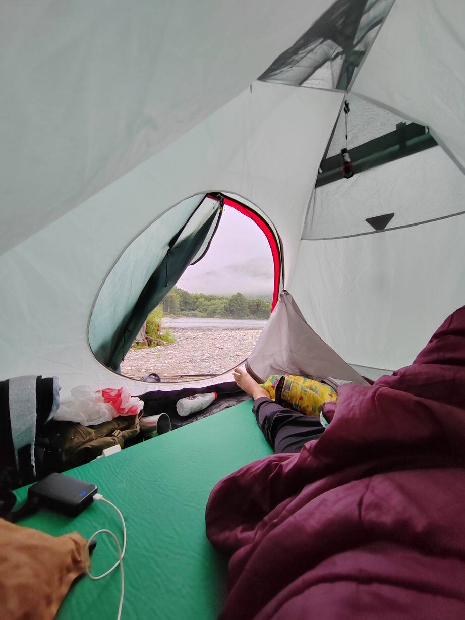 Очередное доброе утром. Ночью шол дождь, всё вокруг мокрое. Нам очень повезло что китайская палатка оказалась очень хорошей и совсем не промокла. Но телу не комфортно. Стар я для всего этого дерьма. Хочу обратно к Андрюхе, Танюхе и даже к Кельнеру. Обнял бы их и поспал. Главное, чтобы на настоящей кроватке с чистой простынью и с подушкой из перьев убиенных птиц.