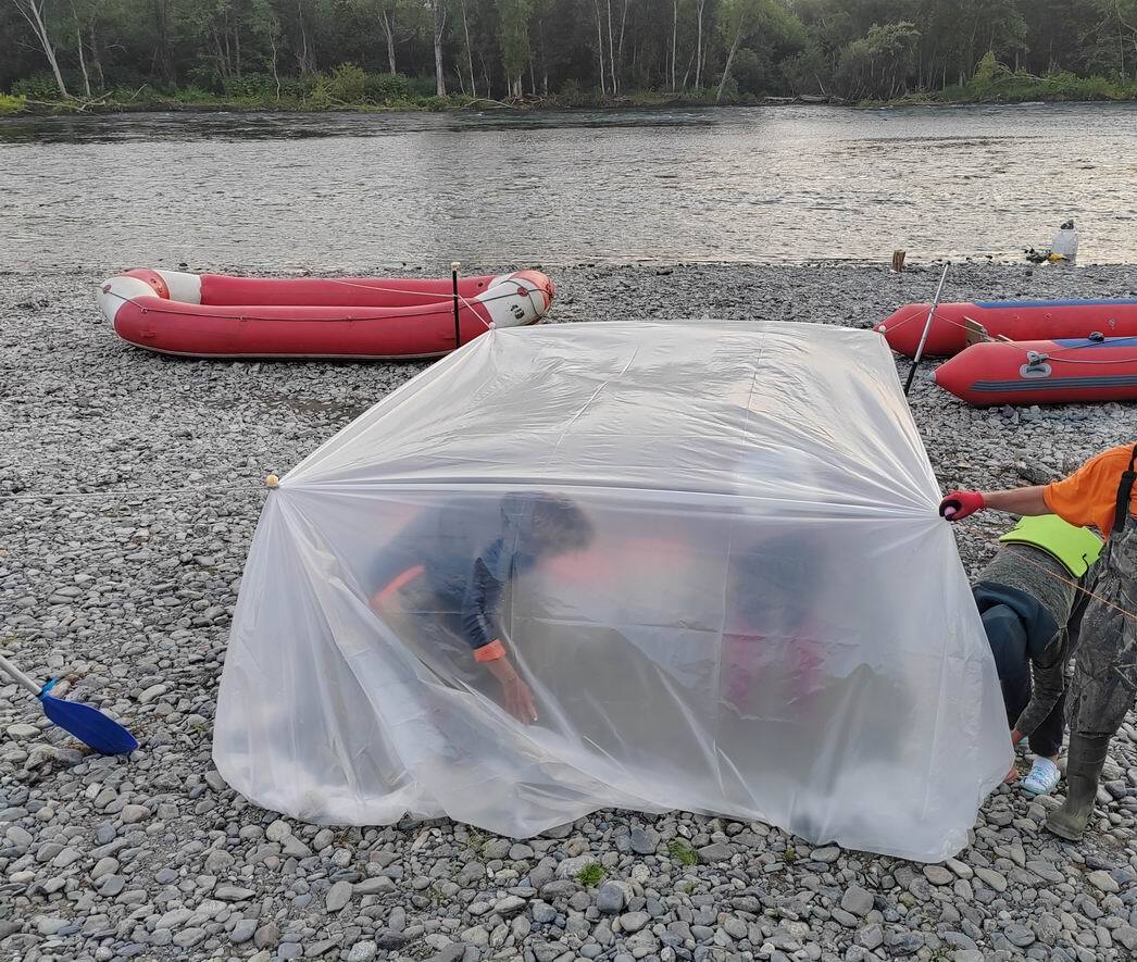 Стоим на реке 3 ночи. Проснулся как новый. Ни комаров, ни ветра, только шум воды и тихонько медведь вокруг палатки ходит и сопит. На завтрак будет уха и жареная рыба. В том числе красных кровей (но это не официально). Мишек за палаткой как говна за баней. Всю ночь сука ходил вокруг лагеря и сипел носом. Туристы-идиоты оставляют еду вот они и приходят. Строгое правило - все остатки еды в воду.