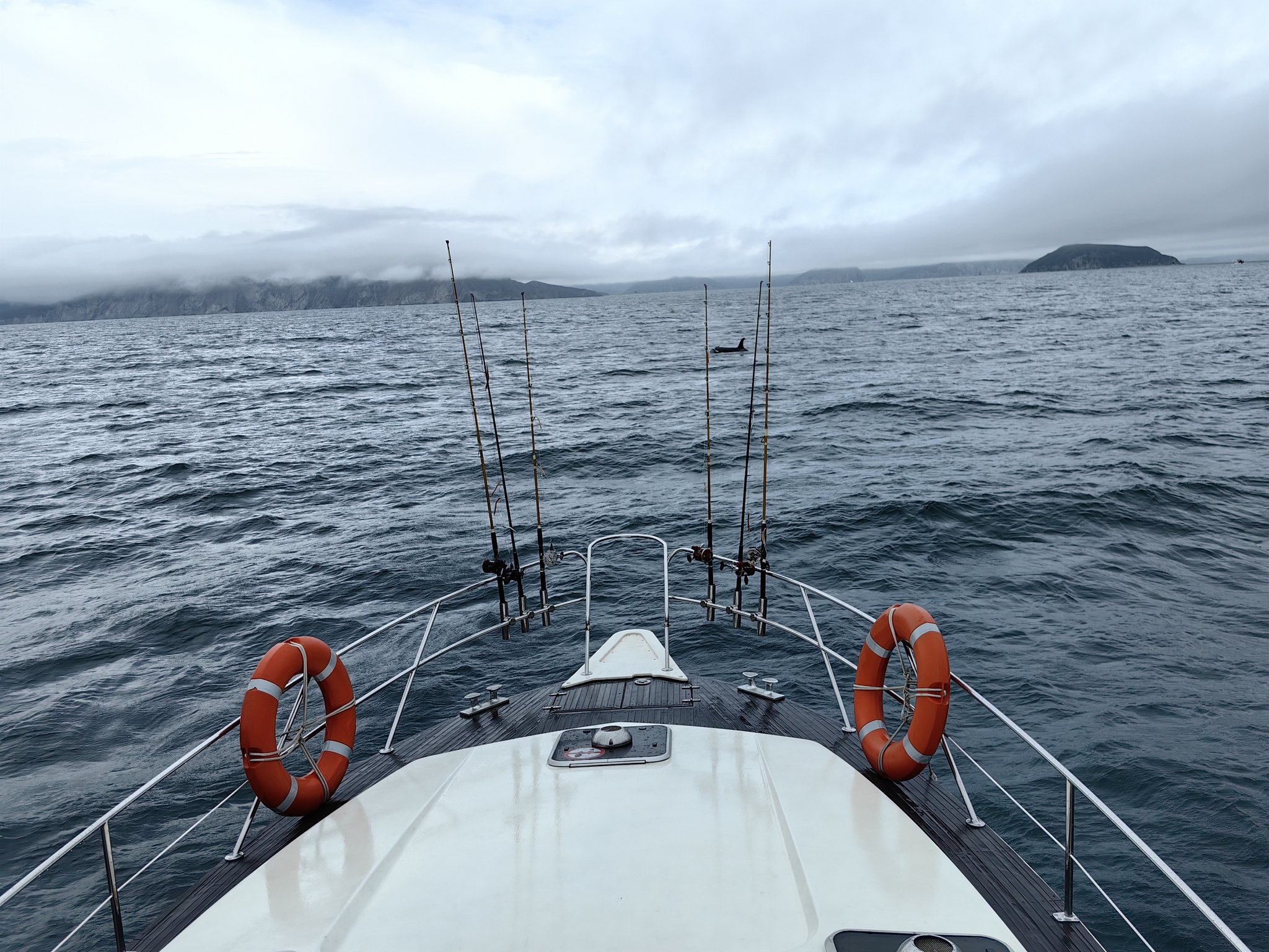 День удался: увидели косаток, кита, сивучей, каланов, поймали рыбу (кушали потом её вечером), увидели замечательнейшие места в хорошую погоду.