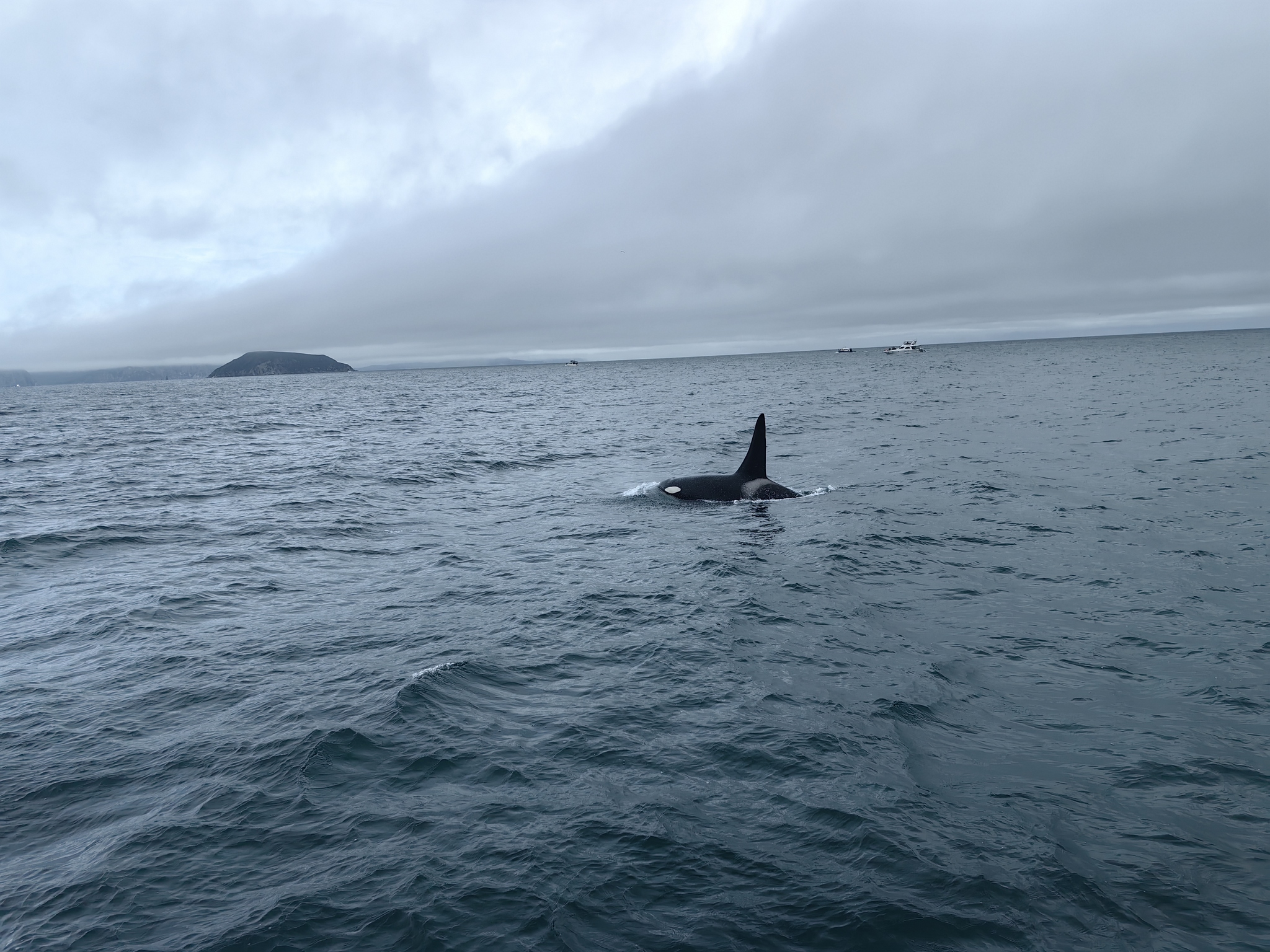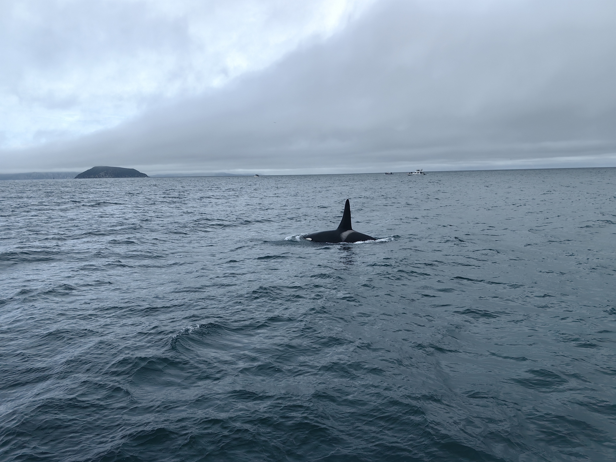 Мы были в шоке. Спрашиваю у сына капитана: а что реже: встреча с китом или с косаткой. Он мне ответил: с китом, тем более в такую погоду, повезло.