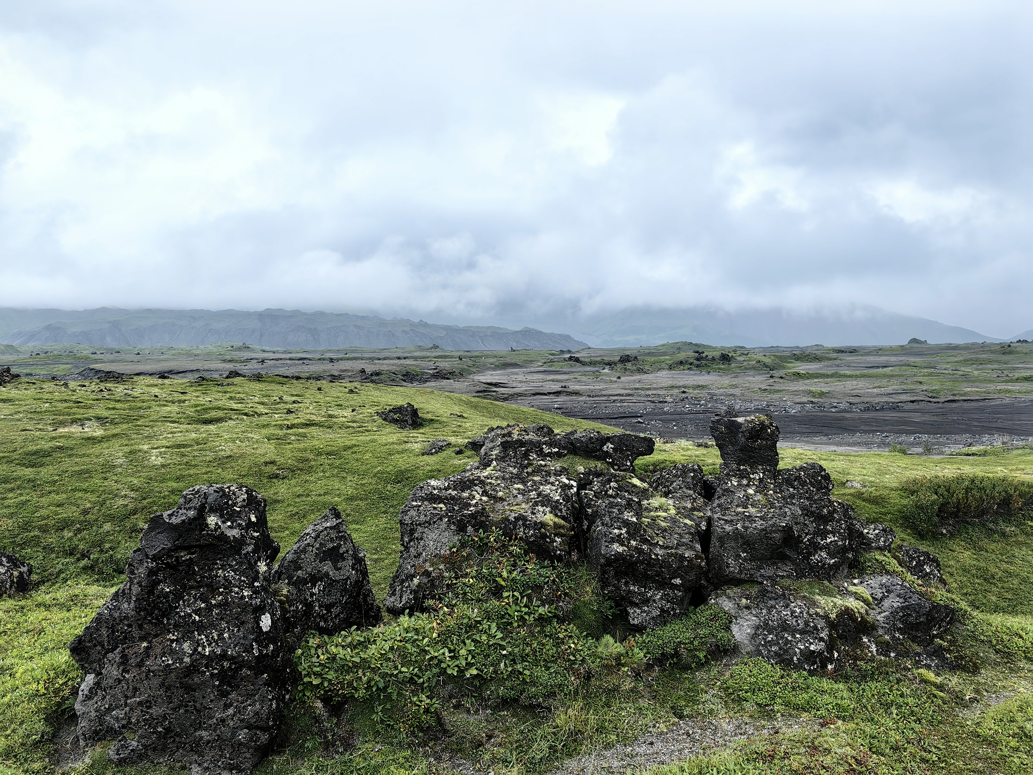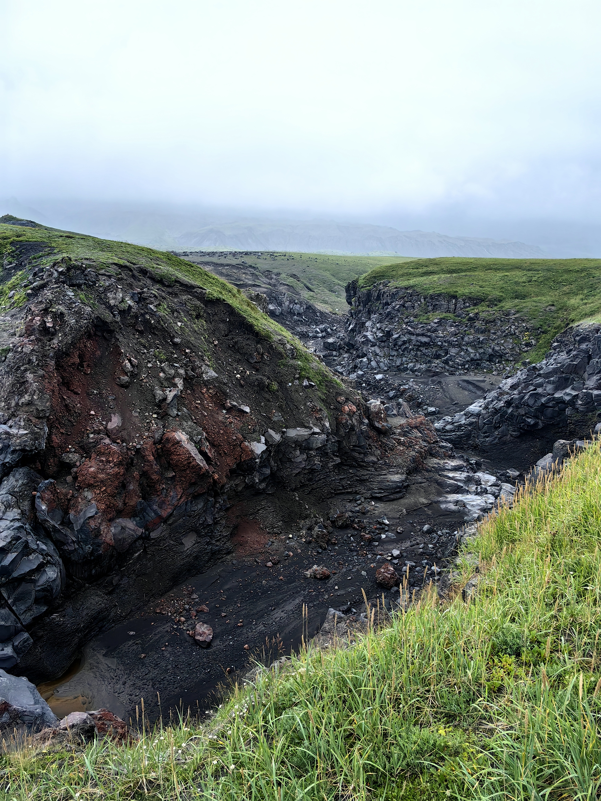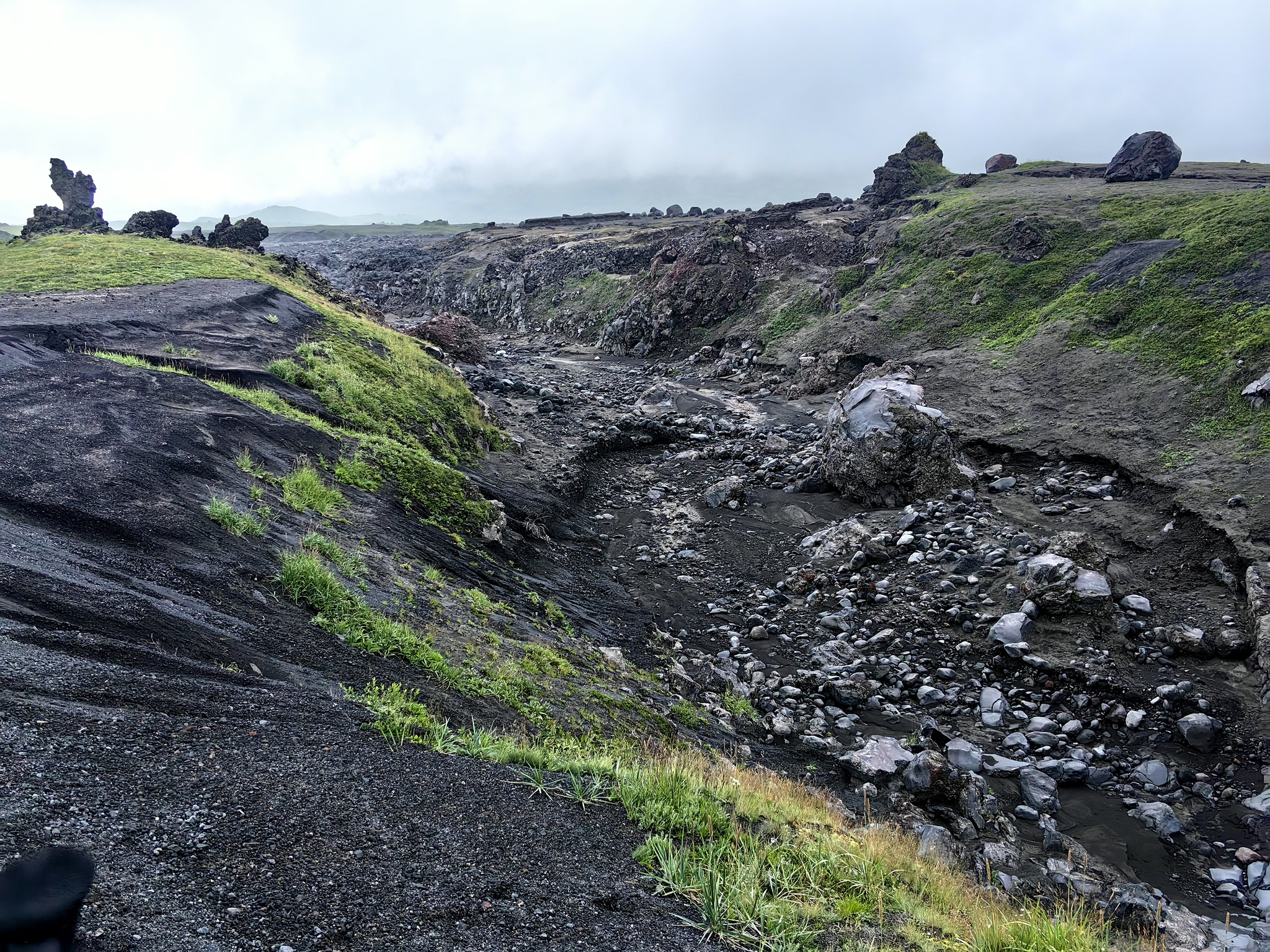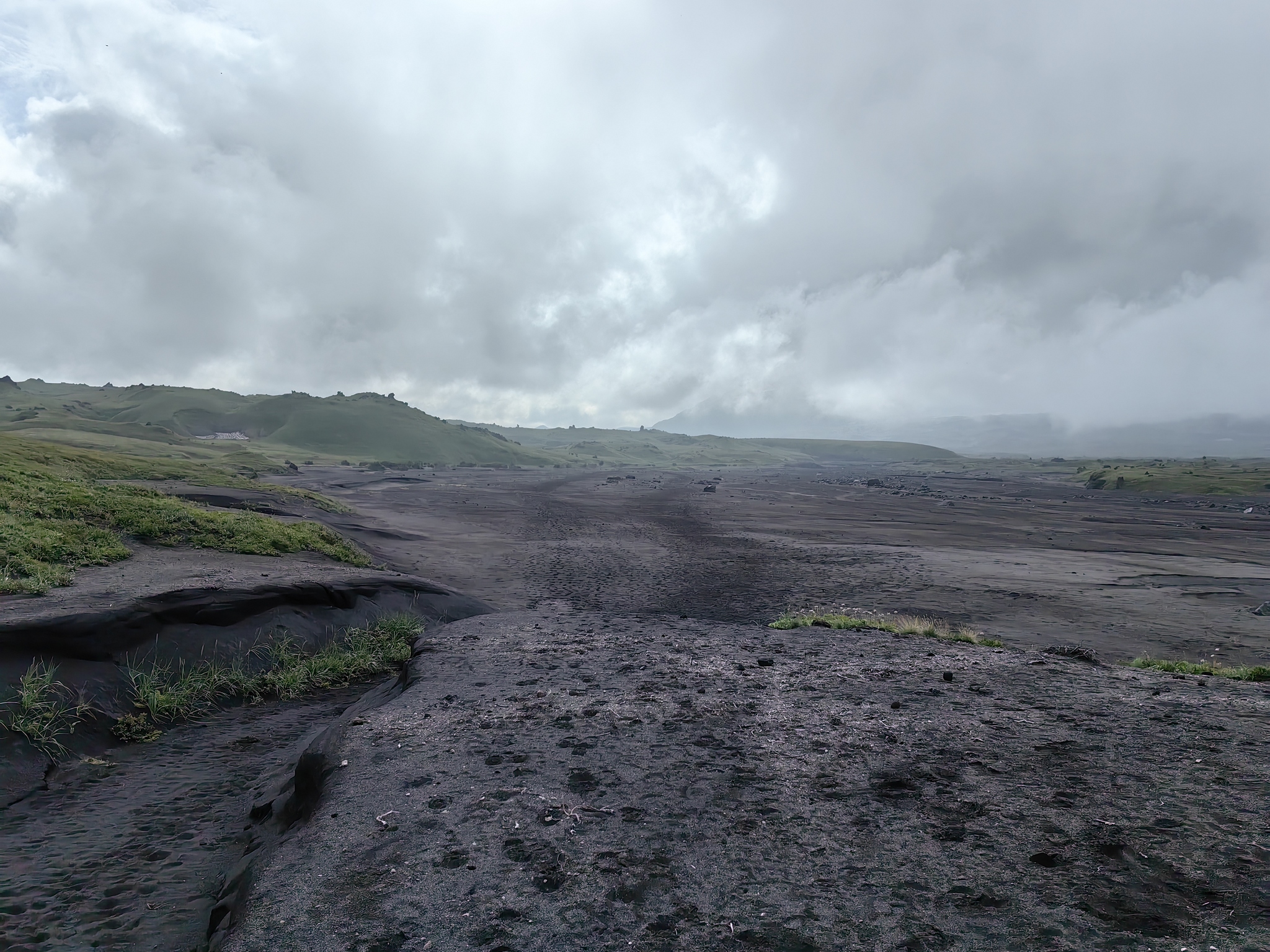 Сначала шли по тропе, вокруг которой зеленые луга, затем перешли на черные пески