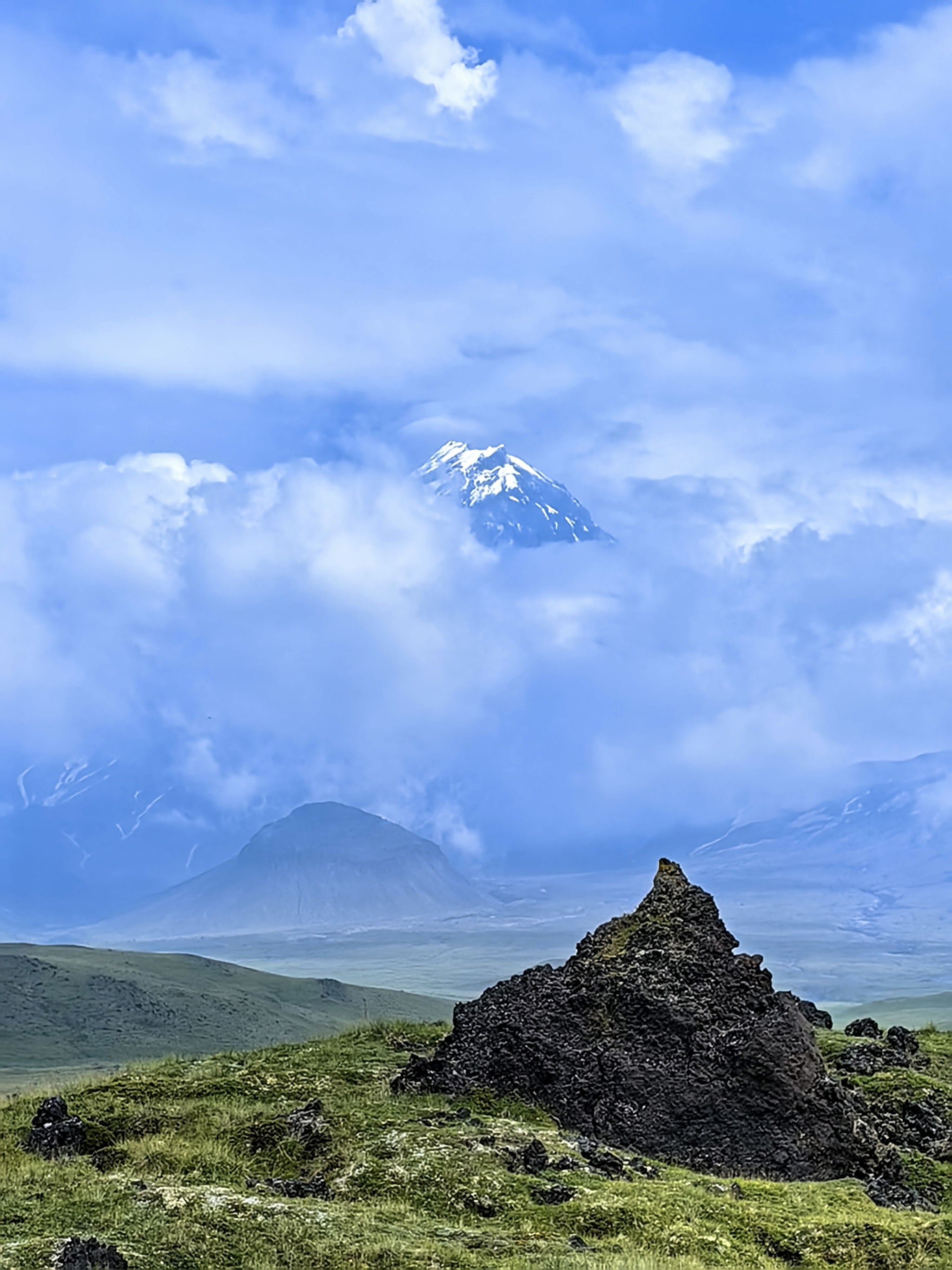 Вулкан Камень, очень близко, но к сожалению закрыт туманами