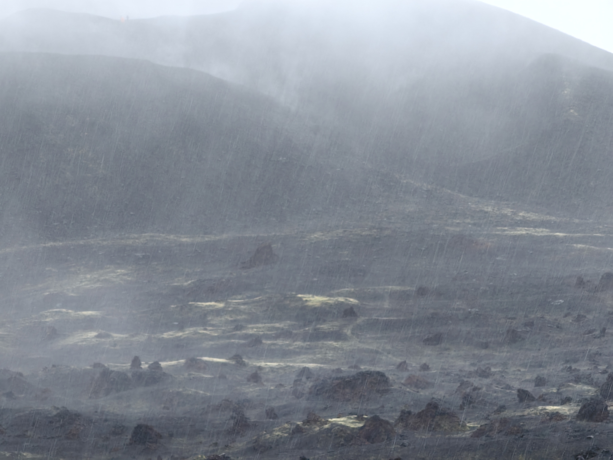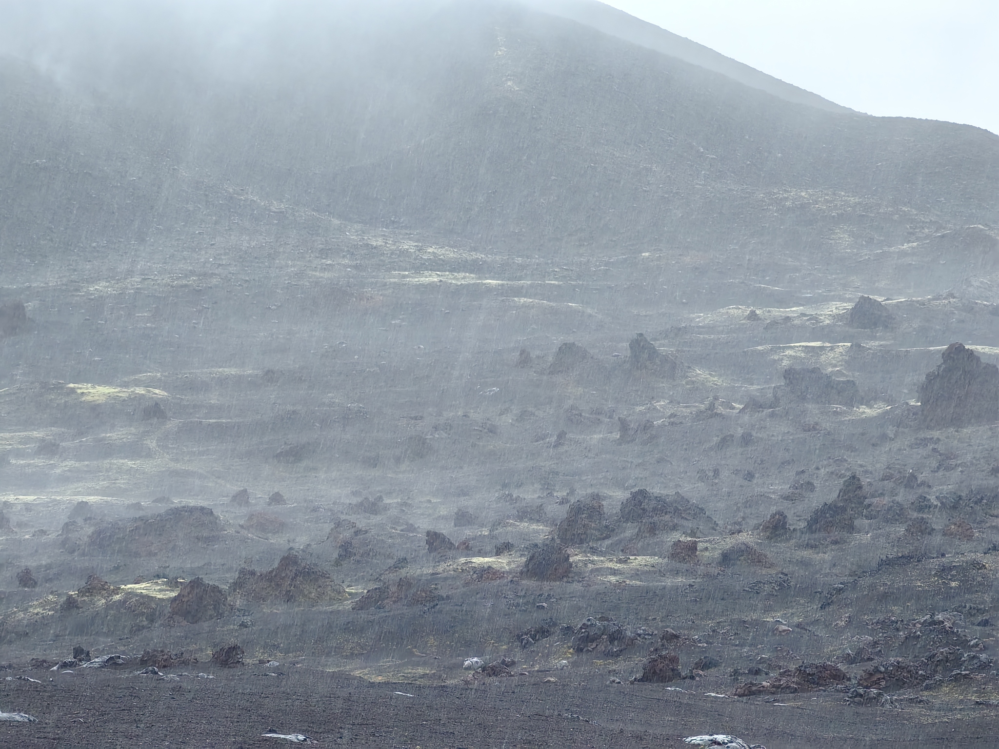 В целом, нас накрыл туман. Мы после обеда (с паштетом) решили немного подняться повыше по Кальдере вулкана. Там нас застал уже дождь.