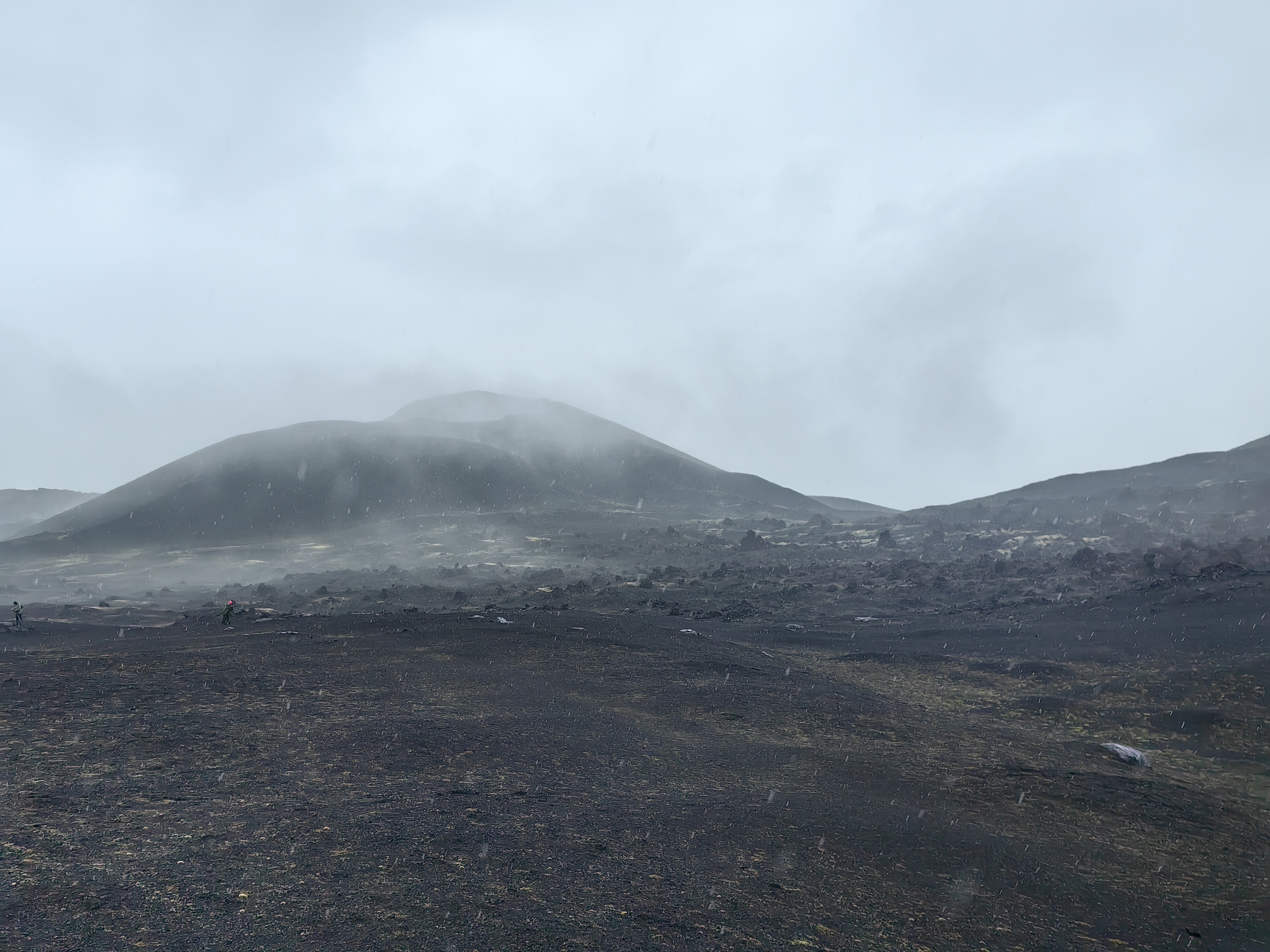 Забегая вперед скажу, мы встретили на вскидку в сумме около 7 групп, которые делали восхождение на Плоских Толбачик - ни у кого не получилось застать нормальную погоду. Нас ЛЮТО повезло, мы видели его кратер и ближайшее окружение открытым. Вознаградилась действительность из пословицы: Кто рано встает, тому Бог подает. Группы коммерческие выходили в 7 и в 8 утра.