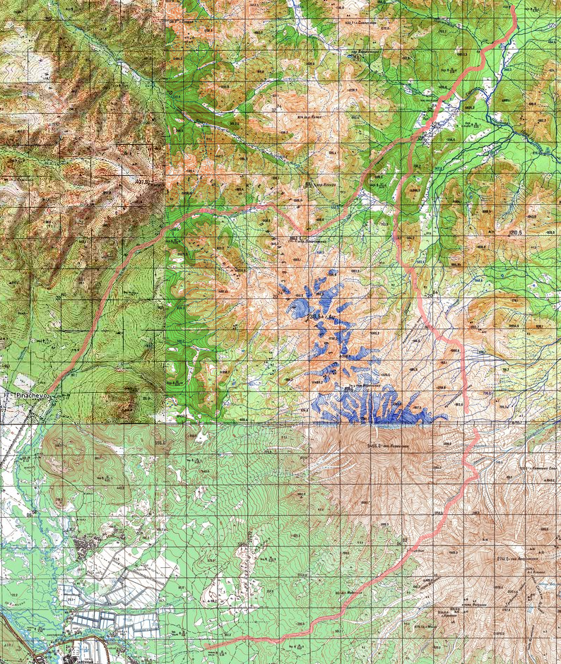 Красная линия это нитка нашего маршрута. Стартовали с "Сухой речки", а финишировали на кордоне Пиначево.