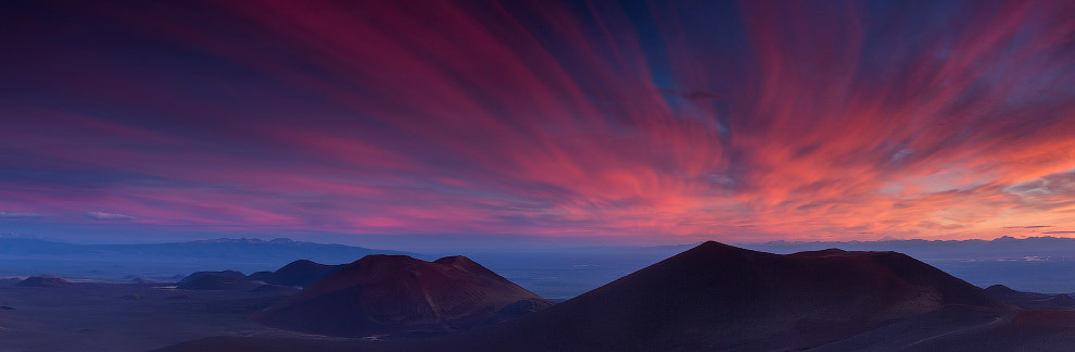 Закат над вулканами: Толбачик, Овальная Зимина и Большая Удина. Кликабельно: http://loveopium.ru/content/2015/05/kamchatka/15big.jpg