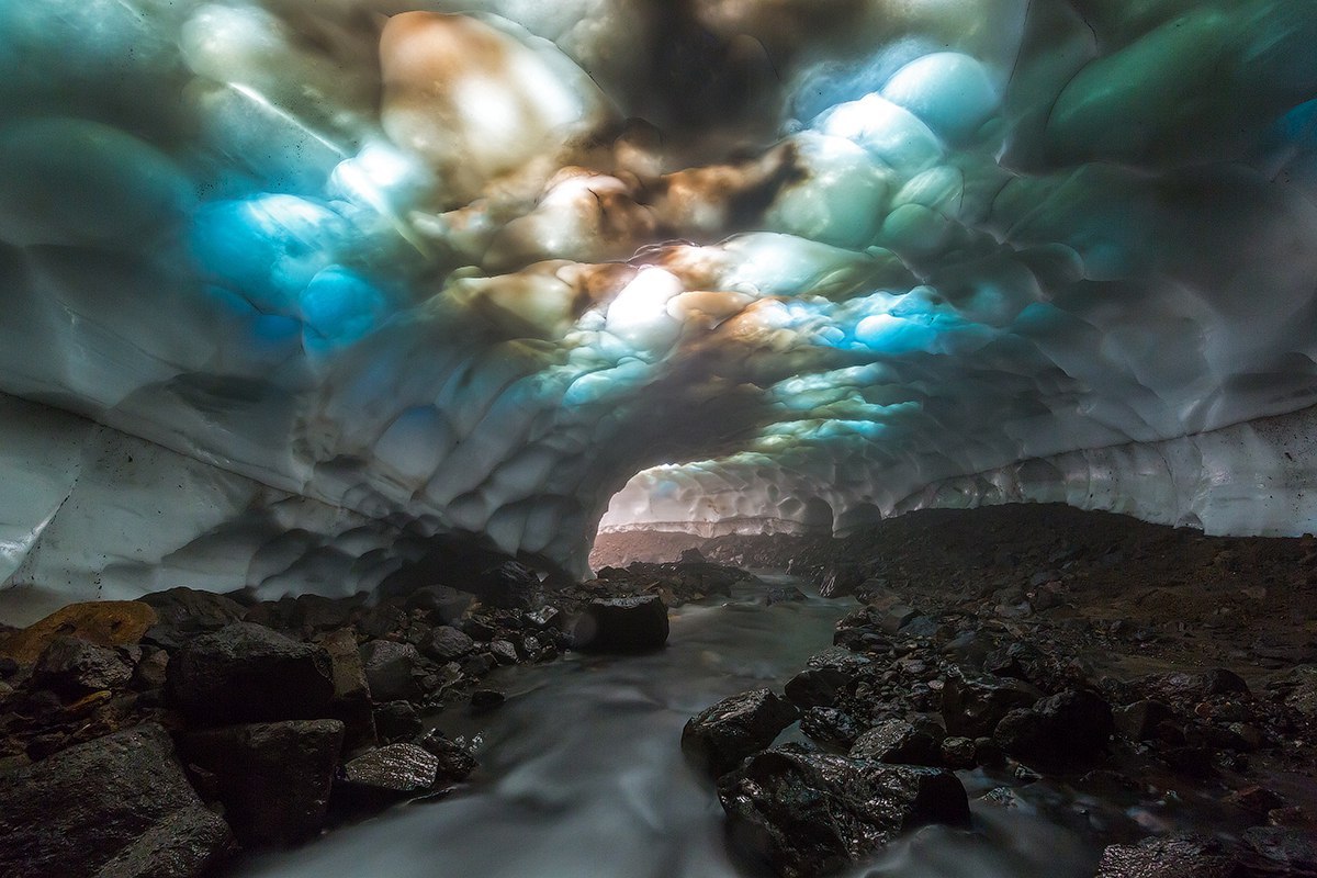 246 gena9207 Камчатка. Вулкан Мутновский. 8 лет назад «Тонкий свод снежной пещеры словно удивительный витраж в замке», – говорит Денис Будьков, участник фотоконкурса «Дикая природа России 2017» Фотография Снег Пещеры Вулкан Красота Россия Вулкан Мутновский